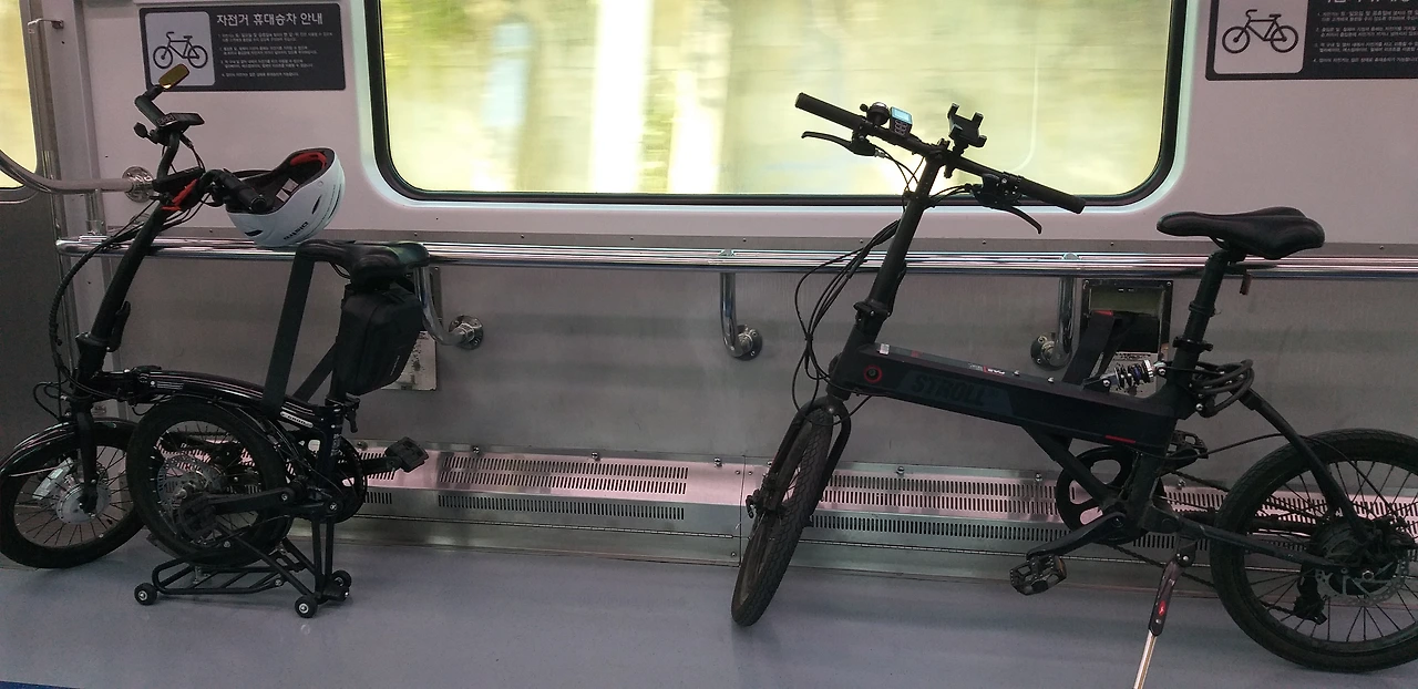 전철의 맨 앞 칸과 뒷 칸은 자전거와 함께 탑승을 할 수가있다. 공휴일에 한해서라지만 그만큼의 규정도 멀리 교외로 나가서 라이딩을 즐기려는 사람들에게는 무척 편리한 제도다.