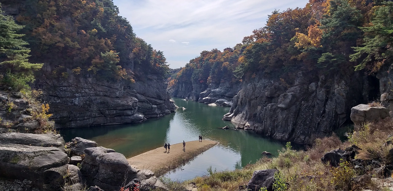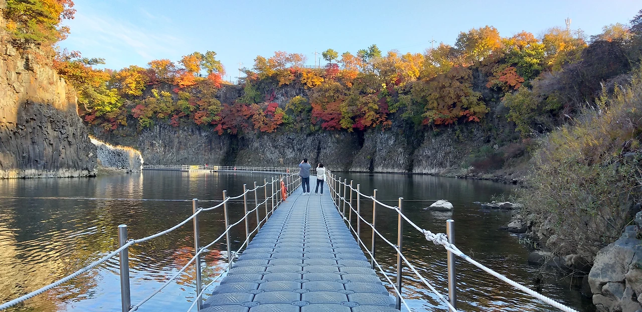 철원 한탄강 은하수교에 다녀왔거든요. 봄, 여름, 가을, 겨울, 계절마다 다른 풍경을 보여주겠지만 10월의 한탄강 주상 절리 계곡은 상상을 초월하는 아름다운 경치를 담고 있었습니다.