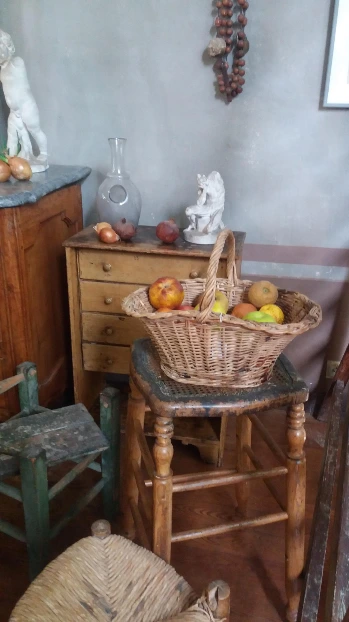 작품에 사용되었던 정물들과 그림을 그릴 때 사용했던 사다리. 그가 힘주어 짠 손자국이 그대로 남아 있는 물감과, 화구를 담아가지고 들고 다닌 가방이 고스란히 진열되어 있어서 마치 방금까지 그가 이곳에서 그림을 그리다가 외출을 한 것 같았다.