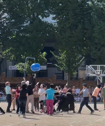청군인 손녀를 따라 우리도 청군이 되었다. 엄마들의 줄다리기에 이어 조부모님들의 경기가 시작되었다. 콩주머니를 던져서 박을 터트리는 경기다. 아이들이 힘내라고 응원을 한다. 누군가 콩주머니를 한 개씩 던지지 말고 모아서 한꺼번에 던지면 쉽게 박이 열린다고 알려주었다. 모두들 한 번에 서너 개의 콩주머니를 하늘을 향해 던진다. 몇 개는 바구니에 맞고 더러는 땅에 떨어지고 바구니를 매단 장대를 잡고 서 있는 선생님의 머리를 맞고 떨어지는 콩주머니도 있다. 던지는 사람들도 맞는 사람도 모두 웃는다. 청군의 박이 먼저 터졌다.