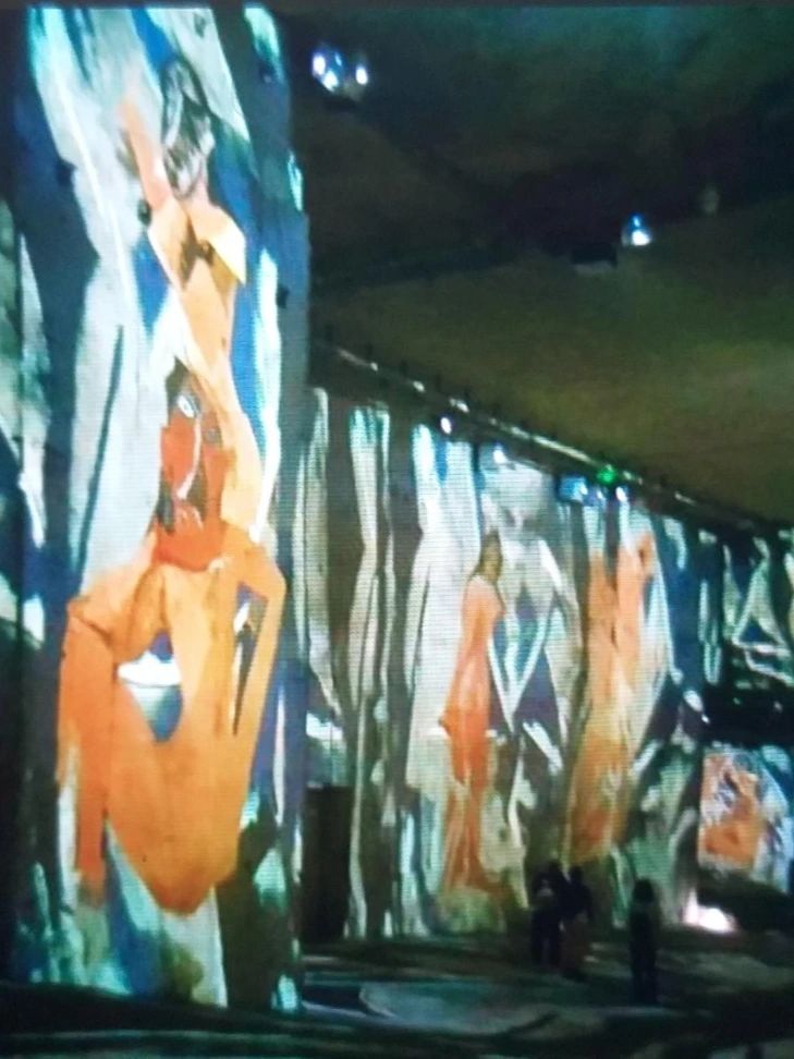 지금은 피카소의 작품을 전시하고 있었다. 바로 이전에는 고흐의 작품을 전시하였다고 한다. 전시가 아니라 상영이라고 해야 맞는 말이다. 돌을 캐내고 생긴 채석장의 벽에 빔을 쏘아서 영상으로 그림을 감상하기 때문이다.