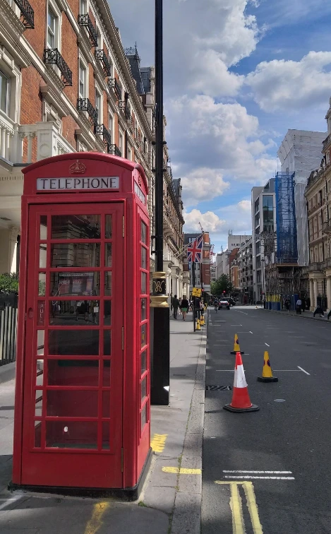 빨강이층 버스와 공중전화박스가 눈길을 끄는 런던 시내