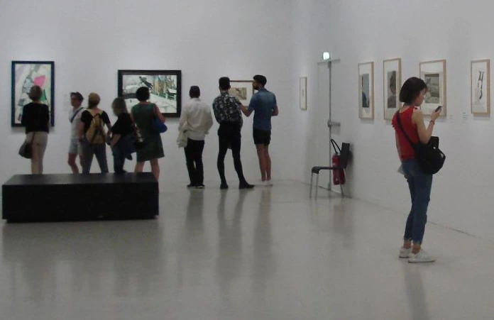 현대식 건물의 단점은 평범하지 않다는 것이다. 독특한 외형 탓에 멀리서도 건물은 빨리 찾았지만 우리가 가야 할 미술관의 출입문이 따로 있는 줄은 몰랐다. 건물 앞에 늘어 선 기다란 줄 끝에 서서 가방 검사까지 마친 뒤 에야 안으로 들어갈 수 있었다. 미술관은 4층에 있기 때문에 당연히 위층으로 올라가는 에스컬레이트를 탔다. 아무리 찾아봐도 미술관은 보이지 않았다. 주변은 온통 책과 컴퓨터 그리고 열심히 공부하는 젊은이들 뿐, 라이브러리로 잘 못 들어 선 것이다. 나중 에야 알게 되었지만 미술관의 출입문은 건물의 정 반대쪽에 있었고 그곳은 줄도 서지 않을뿐더러 가방검사도 하지 않고 자유롭게 출입할 수 있었다..