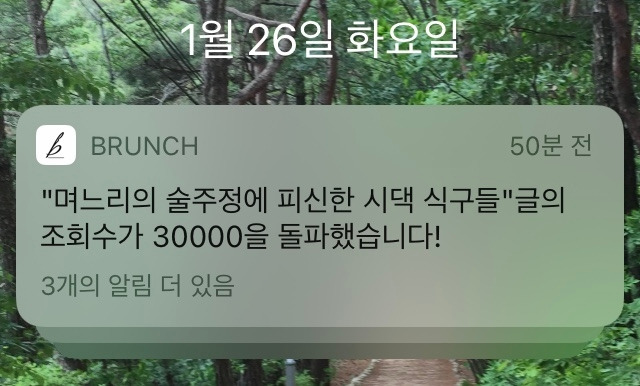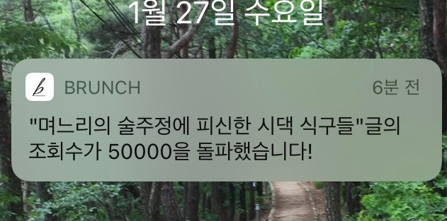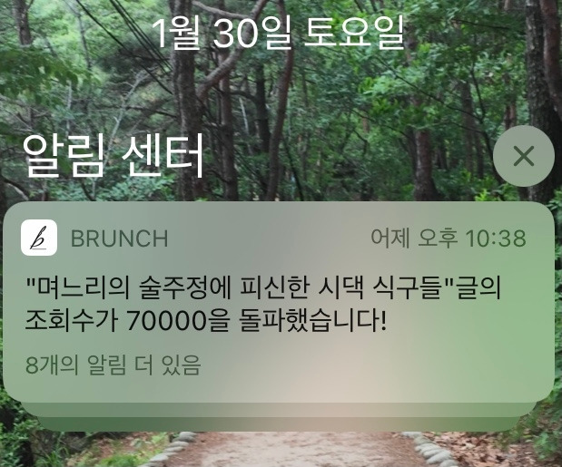 자랑할 만한 글도 아닌데 어쩌다 보니 온 식구가 다 알게 되는 계기가 되었다. 비밀 글쓰기는 이제 끝내고 이실직고해야 할 시간이다. 저녁에 보니 조회수 30,000을 돌파했다는 브런치의 알림이 뜬다. 참 감사한 일이다. 쌀을 씻어 밥을 하고 반찬을 만들어 정성스러운 밥상을 차리듯 정성스러운 상차림이 필요하다. 고급진 재료는 아니지만 생활 속에 흩어진 푸성귀 재료들을 모아서 지지고 볶고 무치고 끓여서 따뜻한 글 한상을 차려야겠다는 다짐을 해본다.