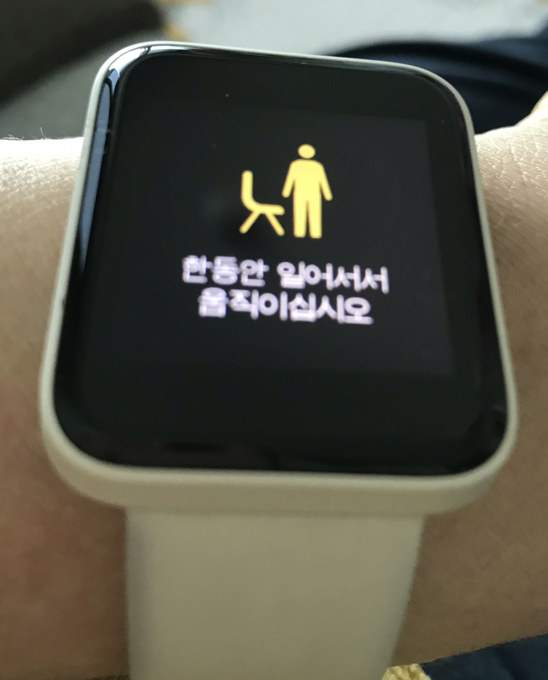 그렇게 혼자 동동거리며 난리를 치고 자리에 앉았건만 mi watch 요놈은 가만히 쉬는 꼴을 못 보는 모양이다. 한두 시간 움직이지 않고 가만히 앉아 있으면 “한동안 일어서서 움직이십시오”라고 재촉한다.