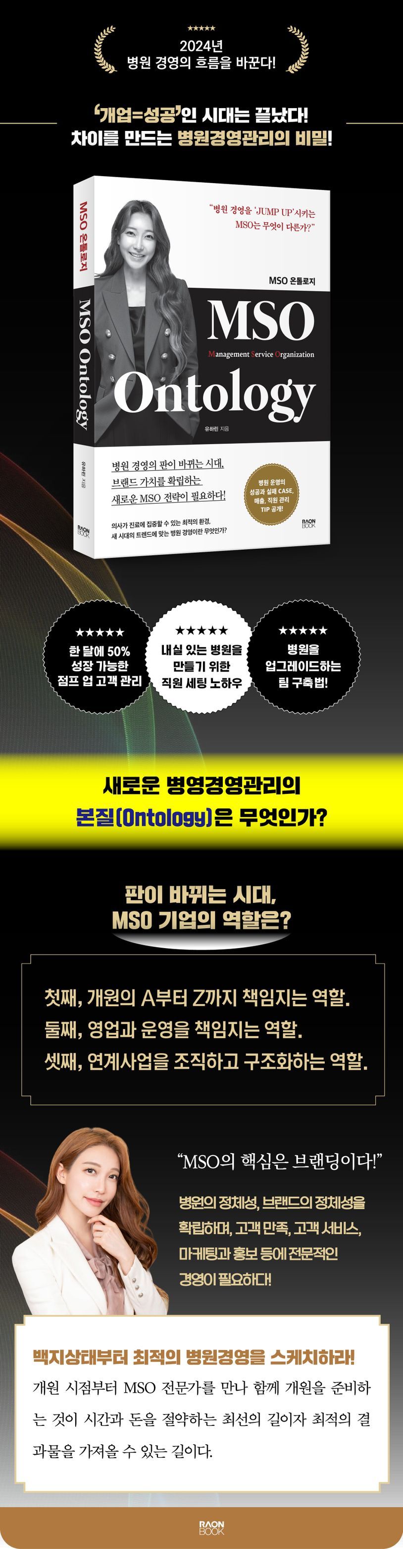 이렇게 다양한 생각과 시간을 활용해 써낸 내 책은 온전히 병원 경영, MSO의 실무에 관한 책이다. 실제 병원을 경영하면서 경험했던 노하우와 사례를 다양히 싣으려 노력했다. 병원을 개원하는 원장님들, 병원을 직접 경영하고 계시는 원장님이 보시면 실질적으로 도움이 될 내용들이다.