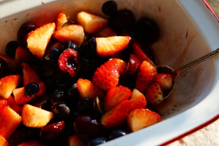 머핀이 구워지는 동안 딸기와 블루베리, 체리를 모두 섞은 후에 발사믹 식초와 설탕 약간을 넣어 버무렸어요. 단 것을 좋아하는 아이를 위한 눈속임용 메뉴였으나 결론부터 말하자면 소용없었음을 고백합니다.