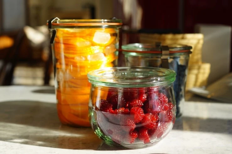 병이 작은 건지 오렌지가 많은 건지 넘칠 지경이 되도록 담았다. 뚜껑을 얹고 힘주어 누른 다음 밀폐하기.