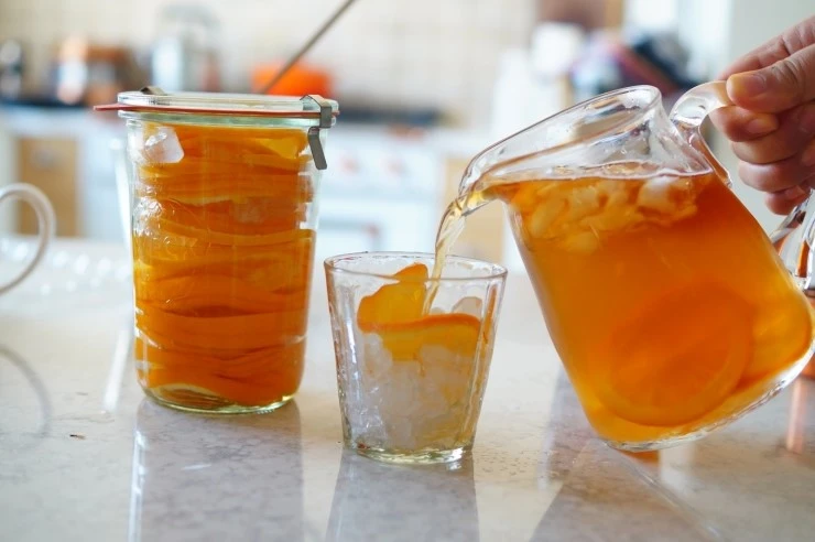 하루에 한 번씩 오렌지가 시럽에 완전히 담기도록 휘젓거나 병을 흔들어주면서 3,4일 정도 숙성시키면 오렌지 시럽이 된다. 냉장고에서 열흘 정도 보관이 가능한 간단한 시럽이다.