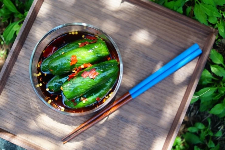 취청 오이 6개를 씻어서 아코디언처럼 칼집을 넣는다. 간장 1/2컵, 식초 1/2컵, 설탕 4 테이블스푼, 붉은 고추 2개를 섞어서 오이와 함께 지퍼백에 담고 냉장고에 두 시간 정도 보관한 후 먹으면 된다. 초록색 오이로 만드는 간단한 절임처럼 사는 것도 이렇게 단순하고 시원하고 가뿐하면 얼마나 좋을까? 갑자기 세탁기가 서버리는 일 따위는 일어나지 않는 일차원적인 삶.