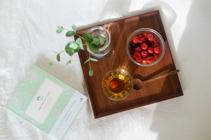 짧은 글마다 간단한 레시피가 딸려 있다. 사실 레시피라 하기에도 낯간지러운 것은 그녀가 소개하는 것이 토마토에 소금을 뿌린 것, 두부에 올리브오일과 소금을 뿌린 것, 간장에 살짝 버무린 닭다리살에 밀가루를 묻혀 튀기는 것, 갓 지은 밥을 소금을 묻힌 손으로 주물러 주먹밥을 만드는 것들이기 때문이다. 그러니까 이 작은 책은 정교하고 체계적인 요리책이 아니라 담백하고 맑은 수필집이라고 하는 편이 옳다. 다만 그 소재가 음식과 식재료와 그릇일 뿐.