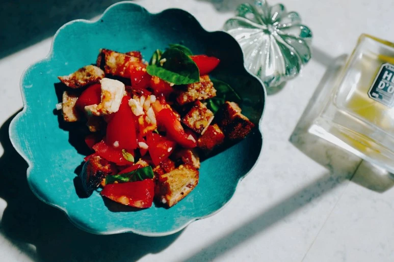 빨간색과 초록색 사이로 흰색이 보인다. 입보다 눈이 더 먼저 호강을 하는 간단 음식. 판차넬라 샐러드다.