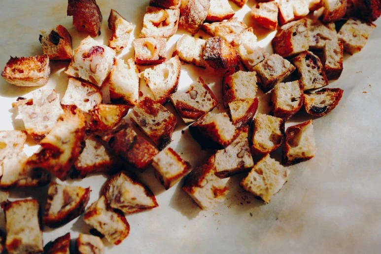 빵을 좋아해서 먹음직스럽게 보이는 빵은 그냥 두고 오기 어렵다. 그중 인기 없는 빵들이 어느 정도 모이면 모두 꺼내어서 한 입 크기로 썰어서 오븐 팬 위에 놓고 올리브유를 뿌린 다음 200도로 예열한 오븐에 10분 정도 굽는다.