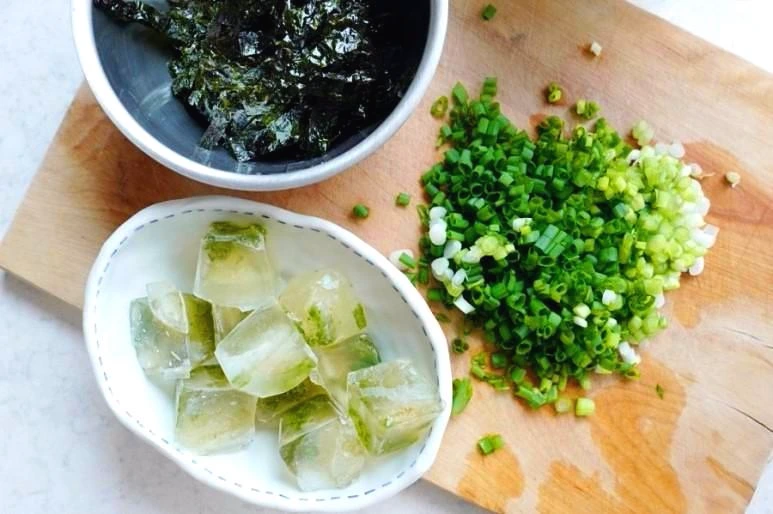 메밀국수가 끓는 시간은 얼마나 짧은가. 대충 식혀서 냉동실에 넣어 둔 맨쯔유가 시원하지 않을 것 같아서 얼마전 민트를 콩콩 찧어 함께 얼려둔 얼음을 꺼냈다. 메밀과 민트가 어울리지 않는 것은 알지만 얼음이 녹아서 민트 맛이 우러나기 전에 메밀국수를 다 먹어버리자는 심정으로 얼음 꺼내고 김과 파를 준비한다.