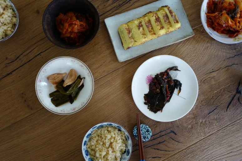 딱 한 포기 남아있던 김장김치를 꺼내서 들기름에 볶아내고 계란말이를 한 후, 깻잎장아찌와 양파절임으로 차린 점심 상. 탄내가 나는 설은 현미밥일지언정 꿀맛이었으니 아마 살이 찔 전조인 듯싶다.