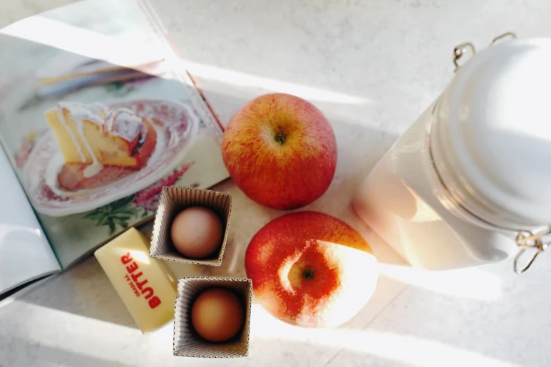 아무리 꼼꼼하게 살펴도 사과 두 알과 버터 125그램, 설탕 반 컵, 황설탕 반 큰 술, 달걀 2개, 밀가루 1컵, 우유 반 컵, 베이킹파우더 1스푼이 전부다. 케이크니까 버터와 밀가루가 들어가고 노르망디 사과 케이크니까 사과가 빠질 수 없다. 재료를 챙기면서도 이게 정말 케이크가 될까 하는 의구심에 식구들이 일어나서 먹을 아침용 케이크라 머뭇거릴 시간이 없다는 점이 더해져 마음은 급해지고 느린 손은 허둥대기 시작한다.