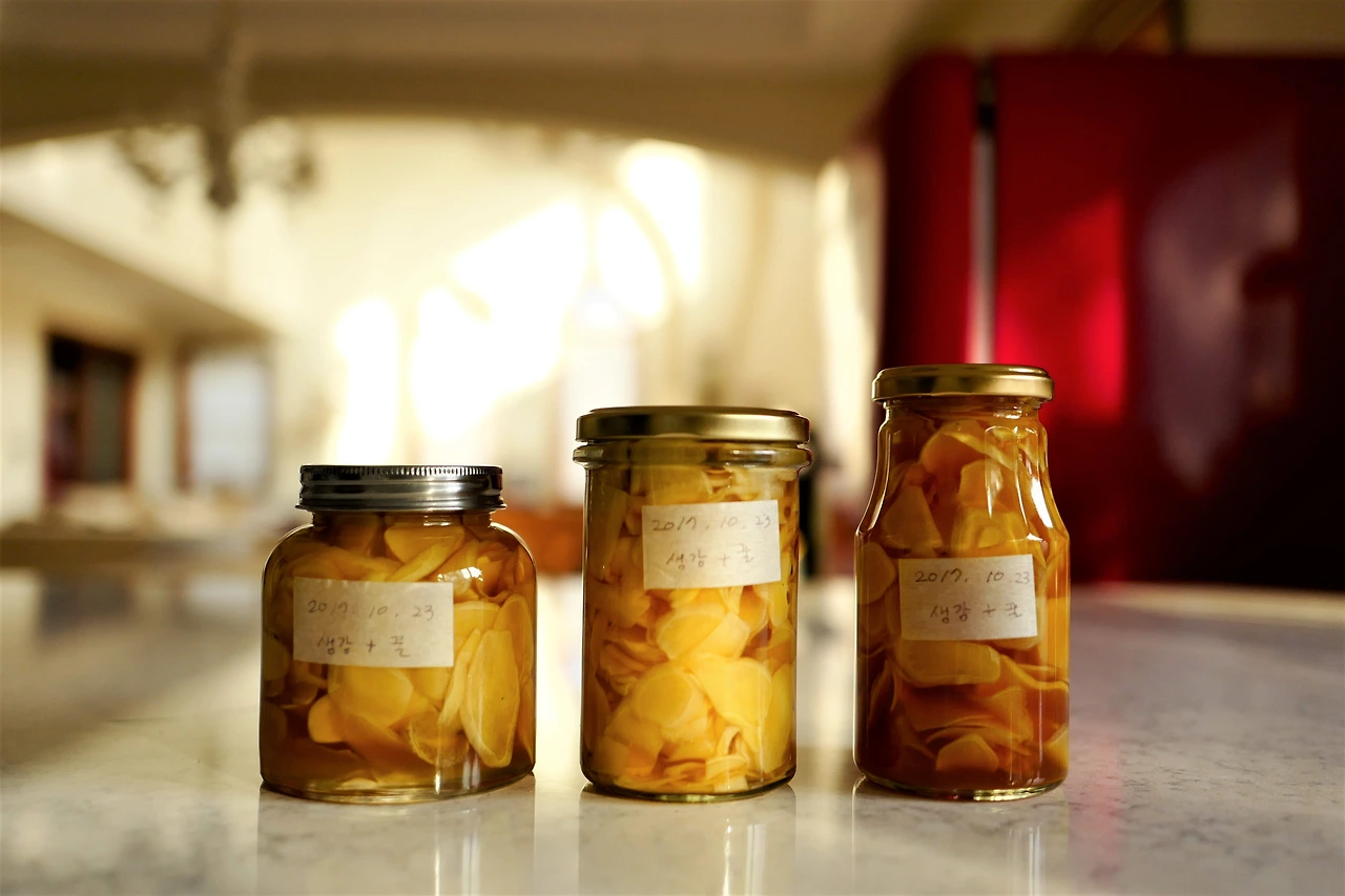 살림은 반복이다. 매일매일, 계절이 지나가고 해가 바뀔 때마다 되풀이하는 일들이 대부분이지만 그 일을 맡아 해내는 마음도 그날이 그날 같을 거라고 여긴다면 오산이다. 평온해 보이는 날들 사이에 억울하고 서운한 날, 막막하고 허전한 날, 이유 없이 불안한 날들이 간혹 양념처럼 끼어든다. 복잡하거나 어렵지 않고 너무 빨리 완성되지 않아 느슨한 시간을 보낼 수 있는 음식들을 만들면 좋은 날이다. 생강 한 무더기를 얇게 저며 꿀에 재우거나 밀가루 반죽을 하고 사과를 조려 애플파이를 굽는 일 등이 맞춤이다. 물을 끓여 유리병을 소독하고 사과를 나박나박 써는 모습이야 누가 보든 자연스러운 주부의 모습이 아닌가. 내가 내 속에서 어떤 집을 짓고 무너뜨리는지 얼마나 되풀이하는지는 짐작도 하지 못할 것이다. 싱크대의 서랍들을 정리하고 양념통들을 채우며 접시들을 쌓아 올리고 행주를 헹구면서 무엇 때문에 답답한지 얼마나 허전한지 조금씩 잊는다. 애써서 마음속을 들여다보는 일은 하지 않는다. 가끔은 고요와 평안이 우선이라는 걸 아는 때문이다. 단순 명쾌한 동작의 반복이 가져오는 진정 효과는 확실하고 식구들은 여전히 내가 궁금하지 않다. 혼자 하는 숨바꼭질이 끝나갈 무렵이면 생강청이 몇 병 만들어지거나 파이가 완성된다. 이토록 완벽한 숨기라니!