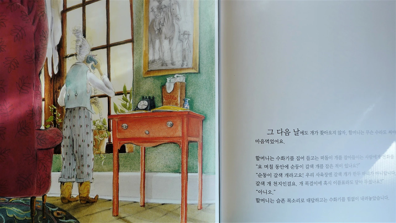 오지 않는 갈색 개를 기다리며 할머니가 의자에 앉아 창밖을 바라보는 표정, 전화하는 할머니의 뒷모습, 비 내리는 거리를 달리며 개를 찾는 모습을 보면 이 할머니 마음에 어떤 병이 들었는지 금세 알게 된다. 할머니가 떠돌이 개들을 보호하는 사육장에 가서 우리 개를 찾으러 왔노라고 하는 장면에서는 마음이 털썩 내려앉는 소리가 들리는 것 같았다. “우리 개!”, “우리 러키!”,“우리 할머니”, “우리 엄마”, “우리”, “우리”.