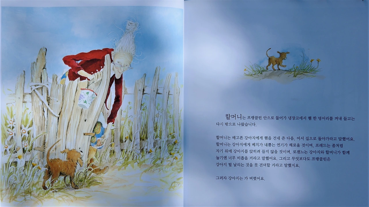언덕 위의 집에서 혼자 사는 할머니는 아침마다 자동차를 몰고 우체국으로 가서 혹시 자기에게 온 편지가 있을까 살펴보지만, 세금고지서 외에는 아무것도 없다. 편지를 보내주던 친구들이 모두 죽었기 때문이다. 외로움을 견딜 수 없었던 할머니는 이름을 짓기 시작한다. 오래오래 살아온 집과 밤마다 누워 자는 침대, 낡은 자동차에 ‘프랭클린’, ‘로젠느’, ‘베치’라는 이름을 붙여주었다. 오래 살 수 있는 것들, 그래서 떠나보내는 슬픔을 겪지 않아도 될 것들에만 이름을 지어 주던 할머니 앞에 어느 날 살아 있는 작은 갈색 강아지 한 마리가 나타난다.