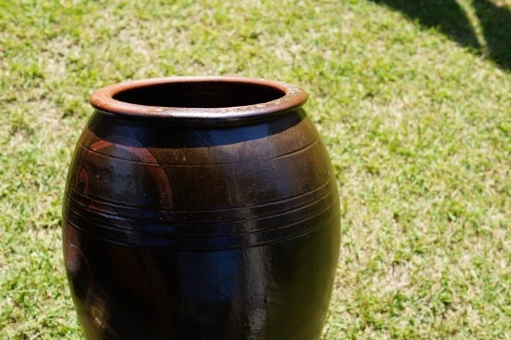 오늘 오미자가 도착한다고 해서 헹구어 놓은 항아리는 햇볕을 쬐며 기다리고 있습니다.