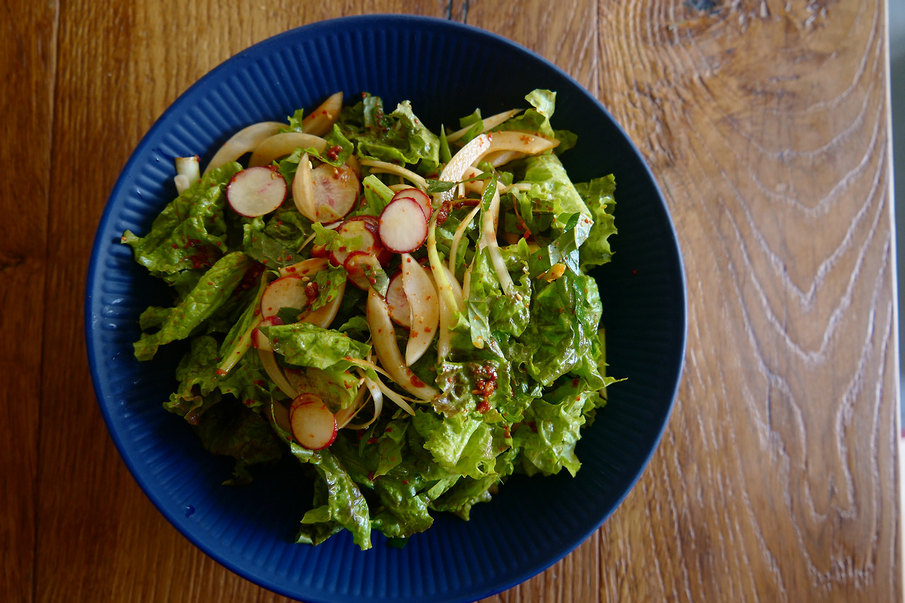 지금도 상추겉절이란 단어를 보거나 들으면 간장과 고춧가루가 섞인 양념 냄새가 어딘가에서 풍겨온다. 그러니까 내게 상추겉절이는 맛이 아니라 냄새로 기억되는 음식이다. 상추겉절이를 만들어야겠다는 생각을 하자마자 서늘한 부엌 벽 쪽에 놓였던 나무 찬장의 문을 열면 훅 끼쳐오던 짭조름한 냄새가 훅 끼쳐온다. 물기를 뺀 상추를 서너 번 자른 후에 양념을 뿌리고 펼친 손가락으로 뒤섞어 들어 올릴 때마다, 채친 오이와 양파를 고명처럼 흩뿌릴 때마다 엄마 냄새가 퍼진다. 좋아하거나 좋아했던 기억은 없는데 냄새만 생생해서 마치 내가 엄마의 찬장에서 상추겉절이 냄새만 훔쳐온 건 아닌가 의심하게 된다.
