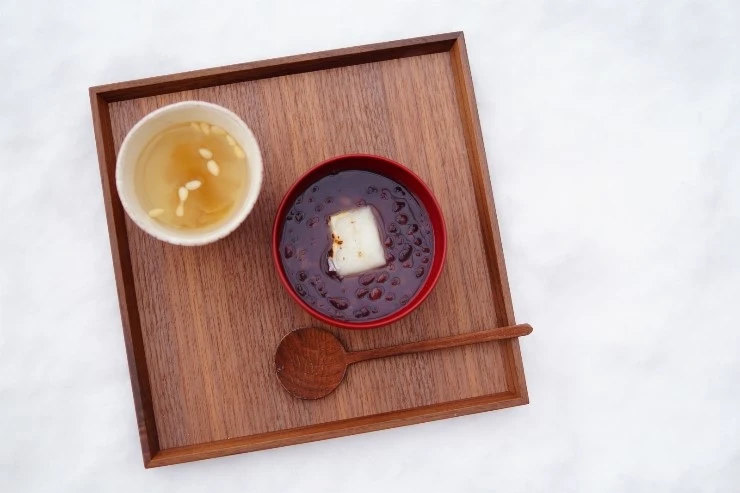 붉디붉은 칠기에 역시 붉은팥을 담고 떡을 구워 올렸다.