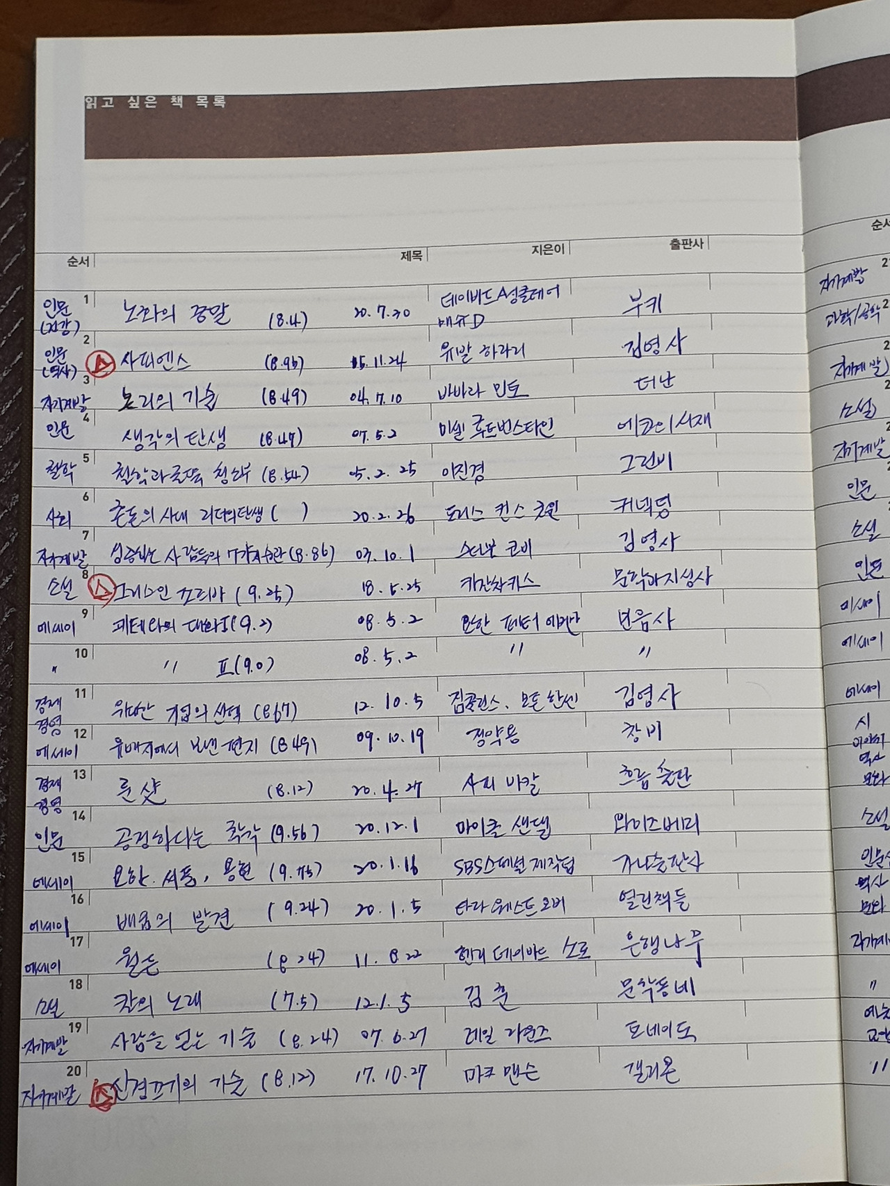 올해가 며칠 남지 않았다. 올해 가기 전에 내년 독서계획을 세우는 것은 어떠한가? 읽을 목표량을 정하고 절반 정도는 읽고 싶은 책을 찾아본다. 독서목록을 채우려면 한나절이 필요하지만 혹시 아는가? 이전과는 다른 놀라운 경험을 하게 될지도 모를 일이다.