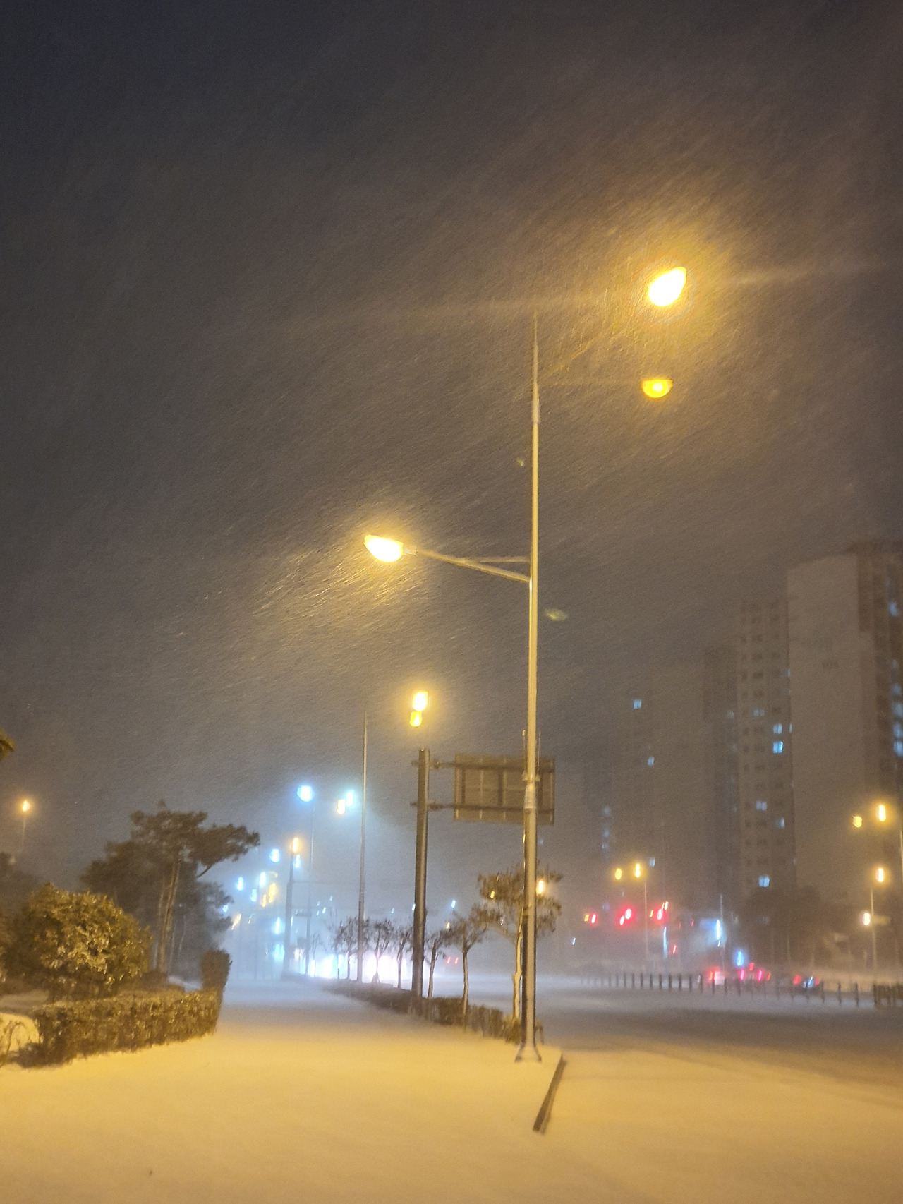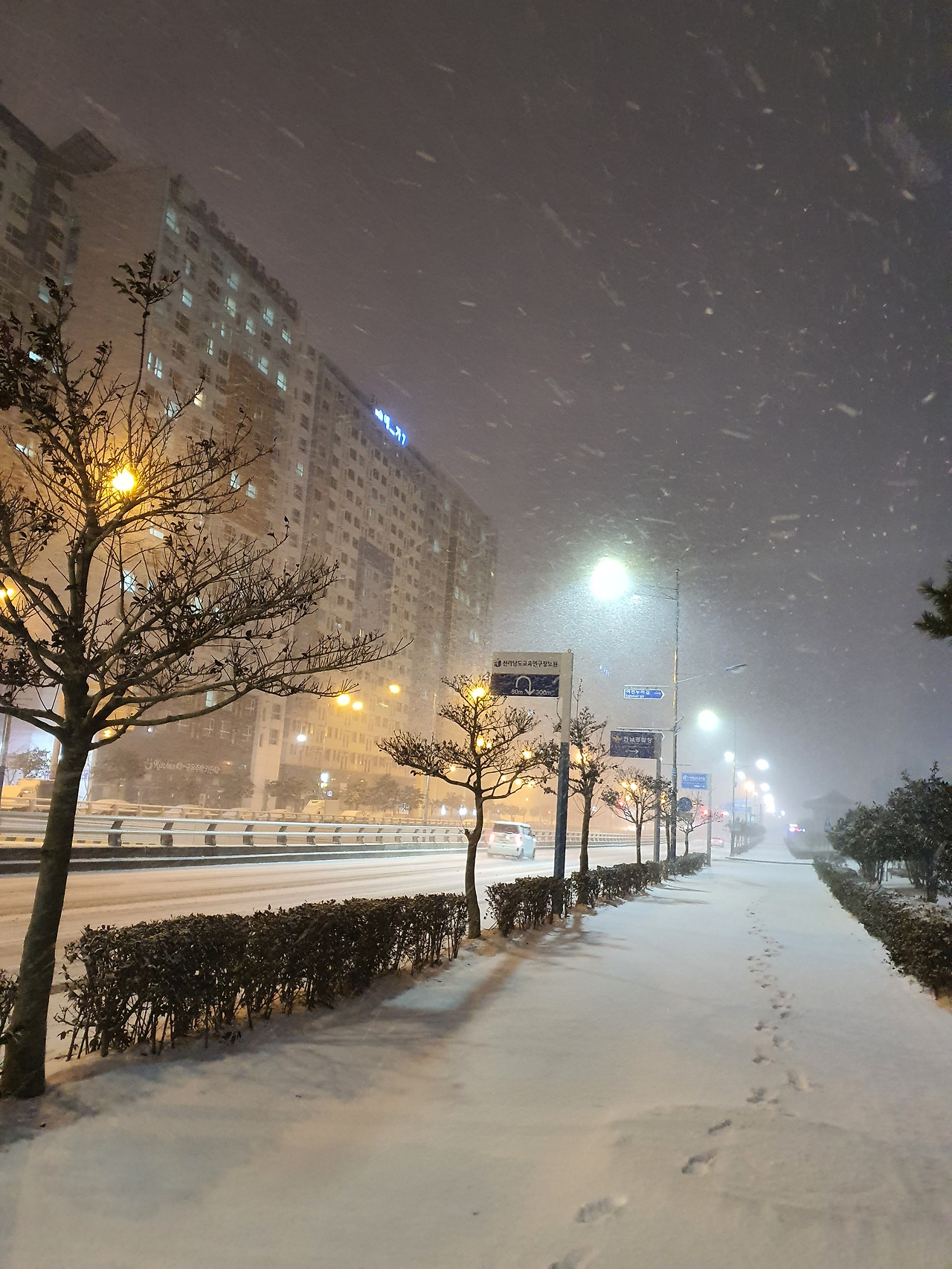 퇴근 무렵 갑작스러운 강풍에 눈까지 휘몰아친다. 올 겨울 마지막 눈은 아닐까. 잠시 멈춤으로 거리 풍경을 담는다. 눈이 떨어지는 곳은 세상 곳곳이다. 산과 호수, 주차장과 가로등, 자동차와 사람 그리고 바닥에도 부딪친다. 소복이 쌓인 눈은 내일 출근길을 늦추겠지만 잊지 못할 추억 한 페이지는 누군가에게 아름답게 선사할 것이다.
