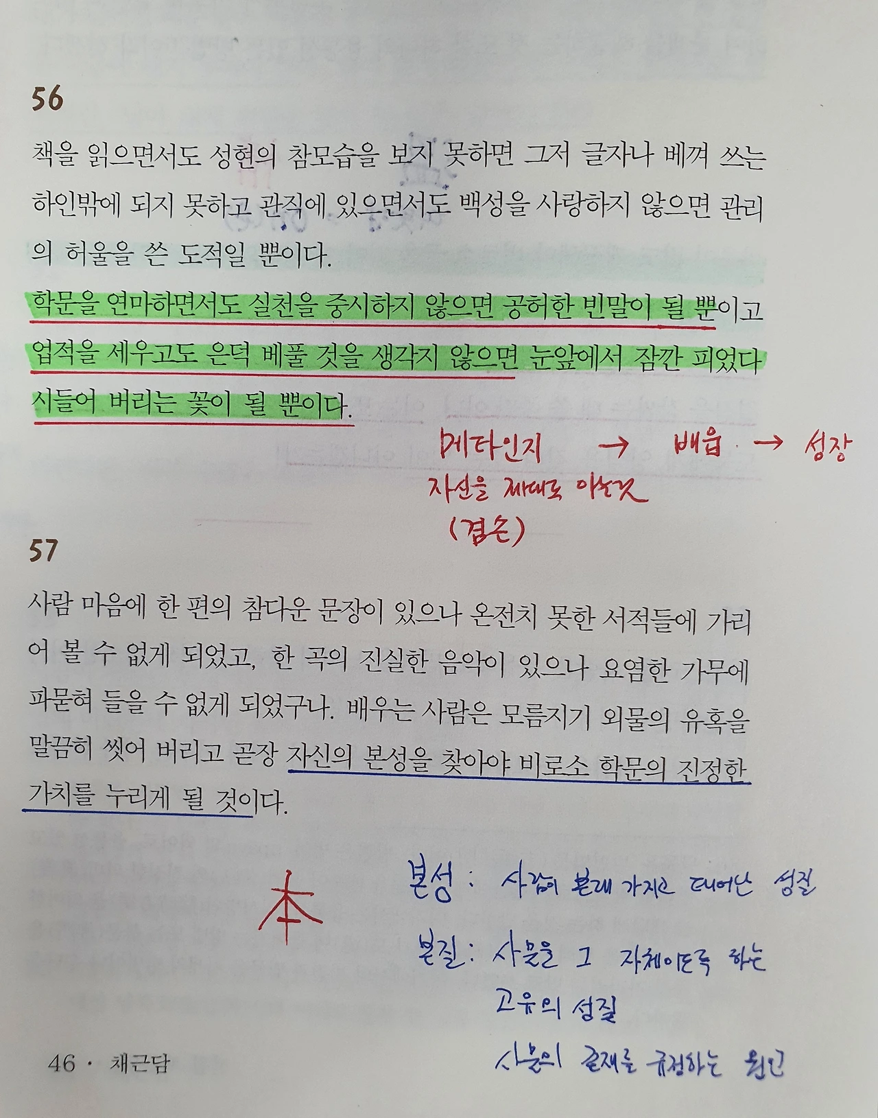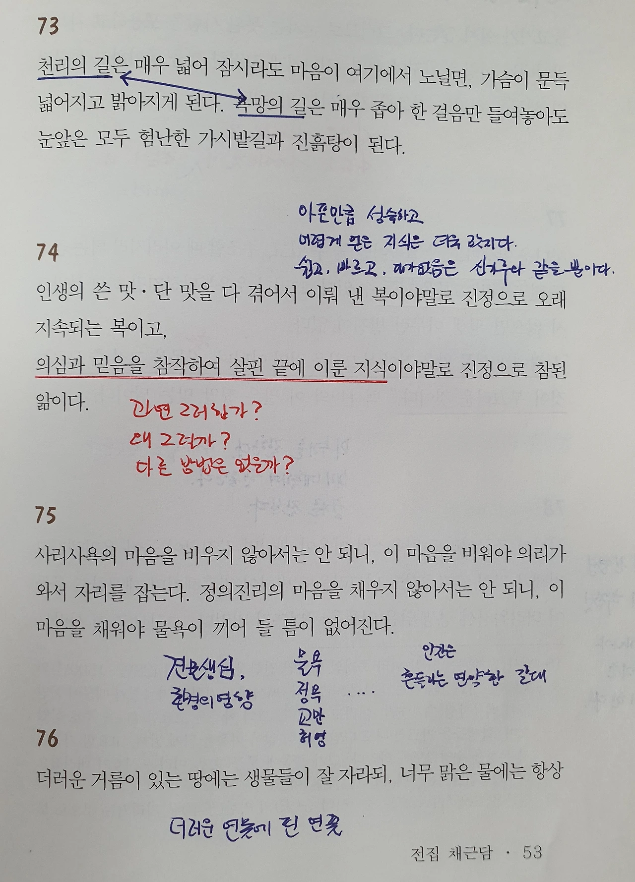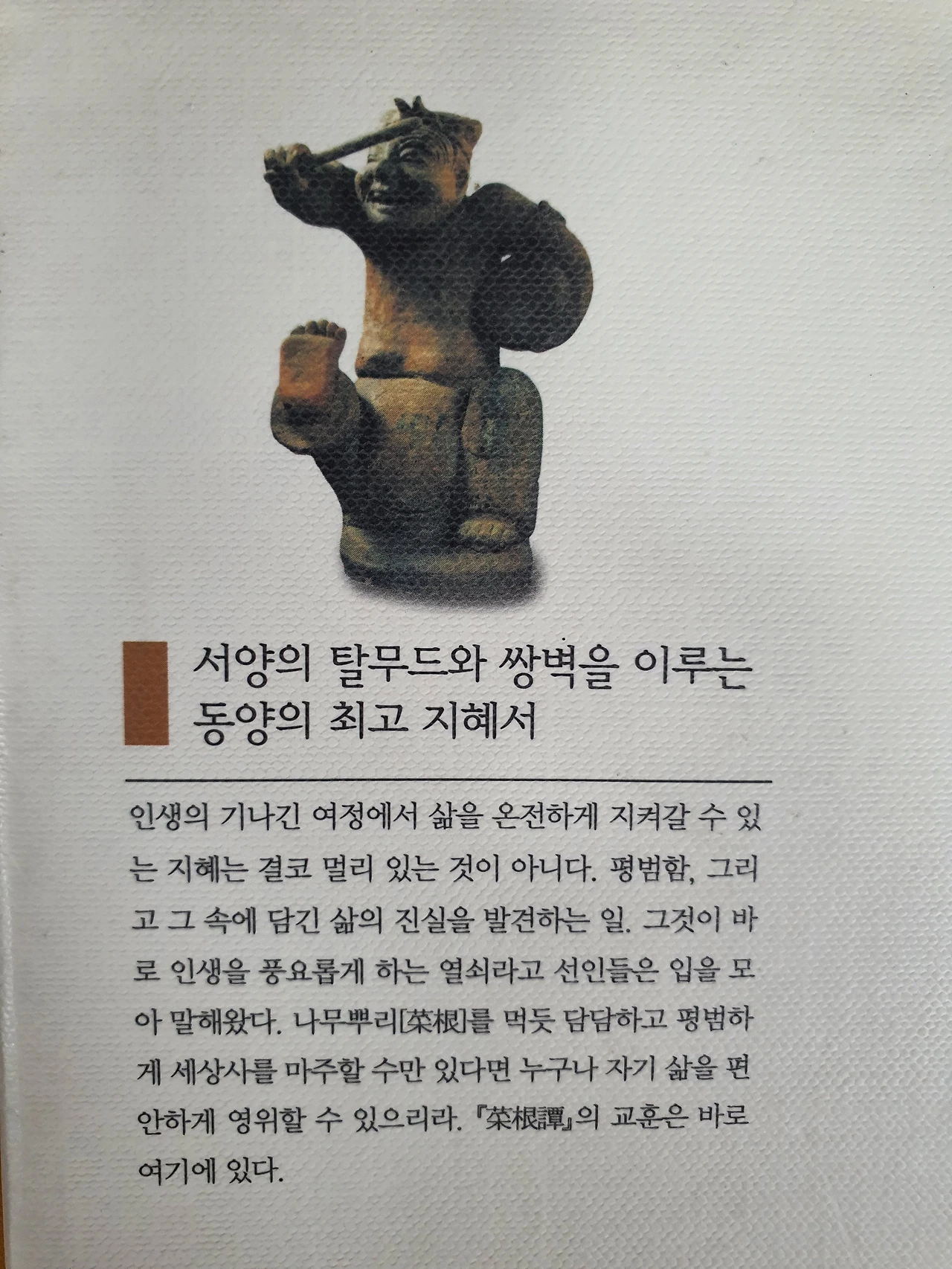 자신의 경험에 비추어 아는 만큼 이해되는 멋진 문장들이 가득합니다. 균형과 조화, 절제와 끈기, 수양과 실천, 비움과 채움, 삶과 죽음에 대해 다시 생각해보는 기회였습니다. 읽을수록 담백해지며, 일상을 돌아보게 되었습니다. 읽는 동안 마음을 비추는 거울이 되어 부족함은 배움과 수양으로 채워야 함을 느꼈습니다. 시대를 초월한 고전은 주로 본질에 집중합니다. 마음 근육을 키우고 삶의 지혜를 얻는데 도움이 될 것입니다.