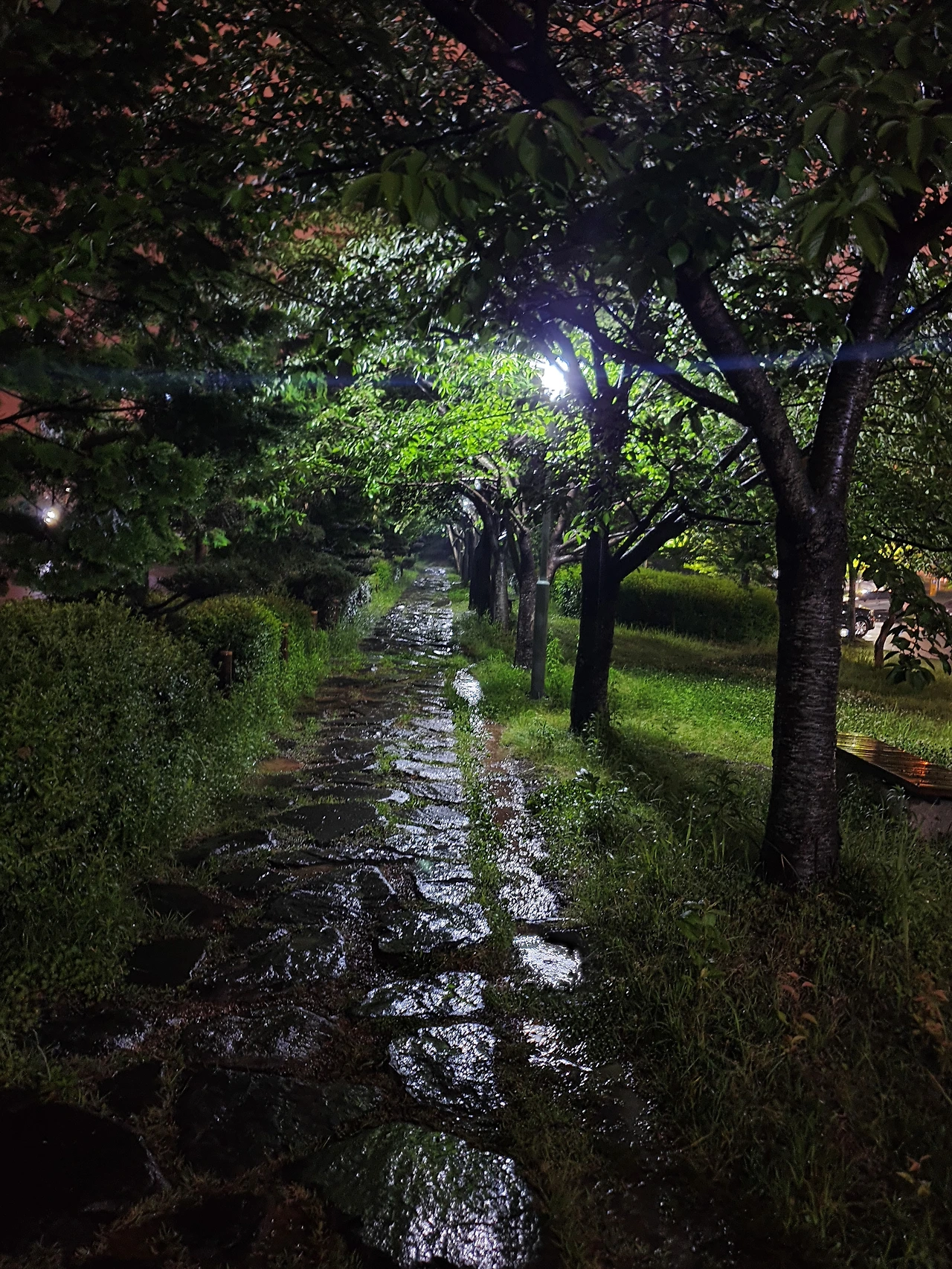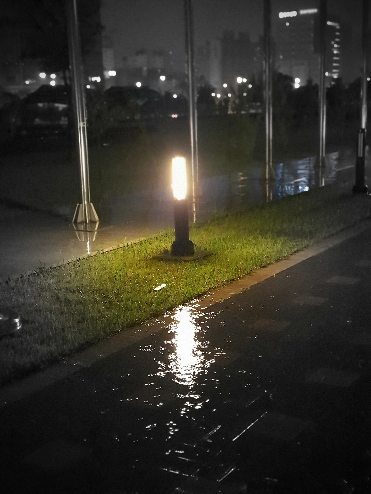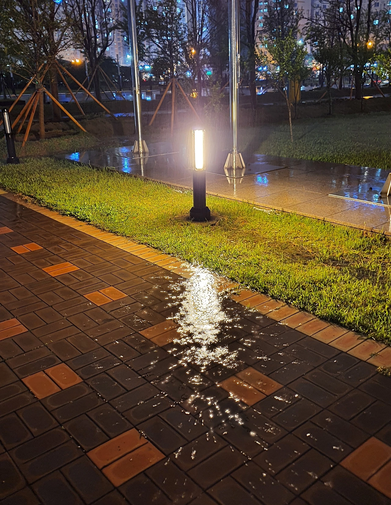 비가 쏟아지는 저녁 늦은 퇴근길입니다. 물에 번지는 가로등 빛의 반사와 번짐을 주목합니다. 비가 쏟아지기에 나올 수 있는 반영입니다. 평소와는 다른 체험은 생각을 확장(발산)하는데 도움이 됩니다.