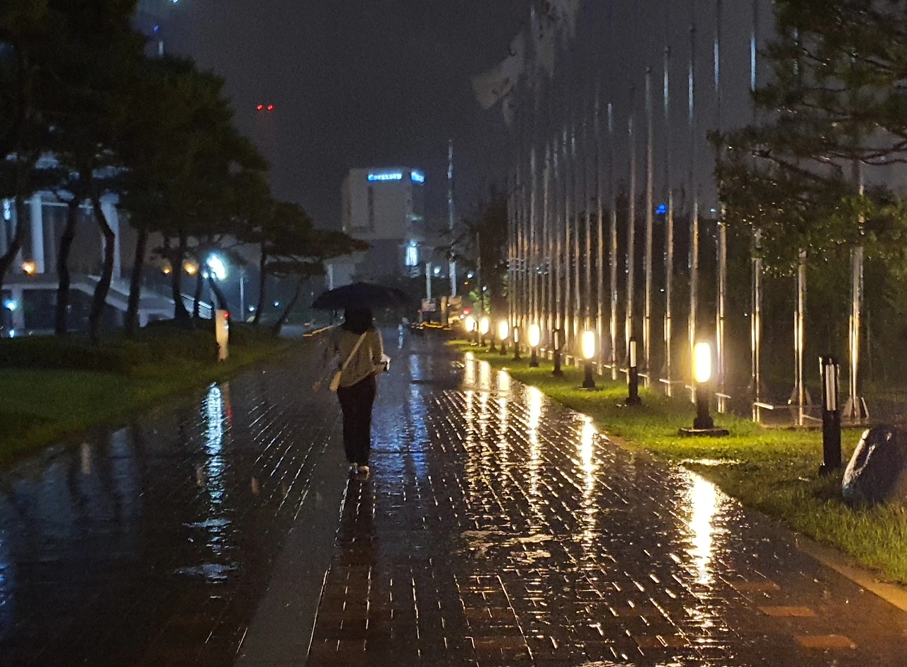 가로등 빛이 반사되어 걸음걸이를 축복합니다. 우산 쓴 행인 덕분에 사진이 꽉 채워졌습니다. 어느 순간이라도 최적점은 존재합니다. 수십 컷 속에서 한 장을 건지는 것은 월척을 낚은 것처럼 큰 수확입니다.(한 권의 책에서 전율을 주는 몇 문장을 체화했다면 독서고수가 되었을 겁니다.)