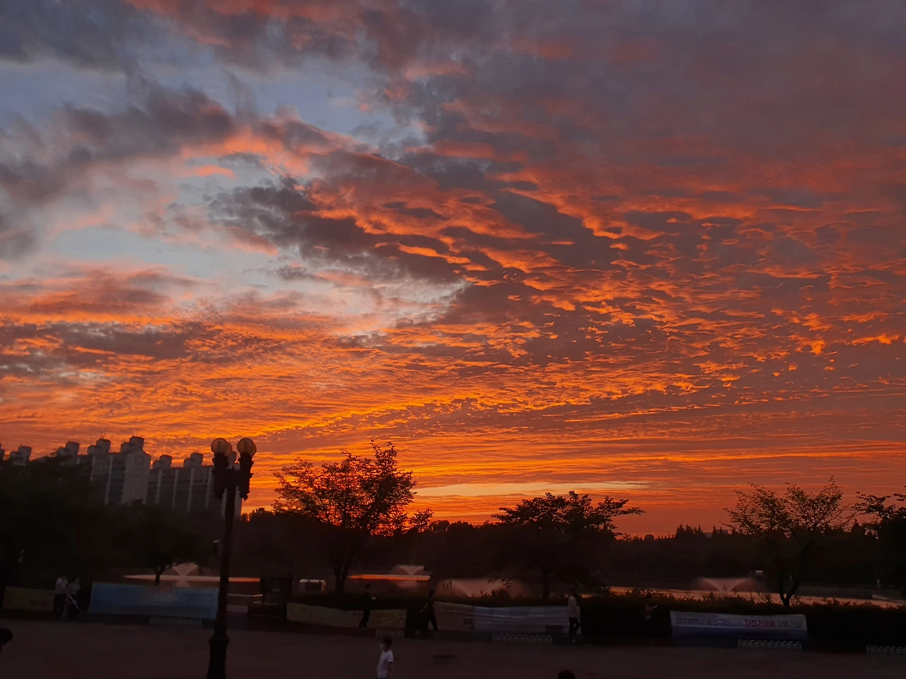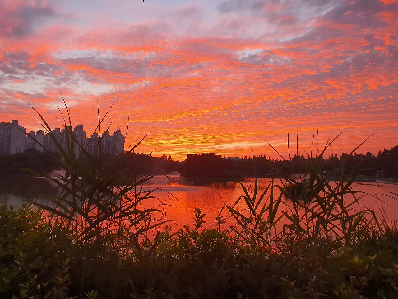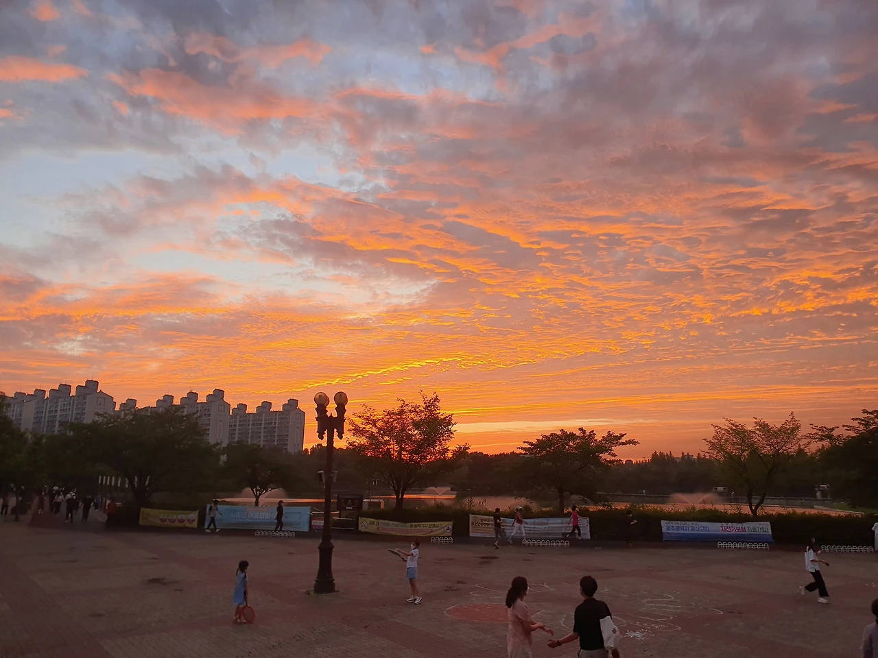 아내가 저녁 먹었으니 공원을 걷자고 했다. 금요일 코로나 백신을 맞은 터라 하루 지나도 그리 유쾌한 몸 상태는 아니었지만 둘째와 셋이서 공원을 향했다. 공원에서는 붉은 노을이 장관을 이루고 있었다. 둘째는 '우와~'하며 감탄사를 연발한다. 도시에서 이런 장면을 보는 날은 일 년 중 며칠이 되지 않는다. 운이 좋은 날이다. 공원에 나온 사람들은 크게 세부류다. 노을에 관심 없거나, 노을 사진을 찍느라 분주하거나, 노을멍을 하는 사람이었다. 경험상 사진도 많이 찍어본 사람이 잘 찍듯이, 노을 멍도 해본 사람이 잘한다.