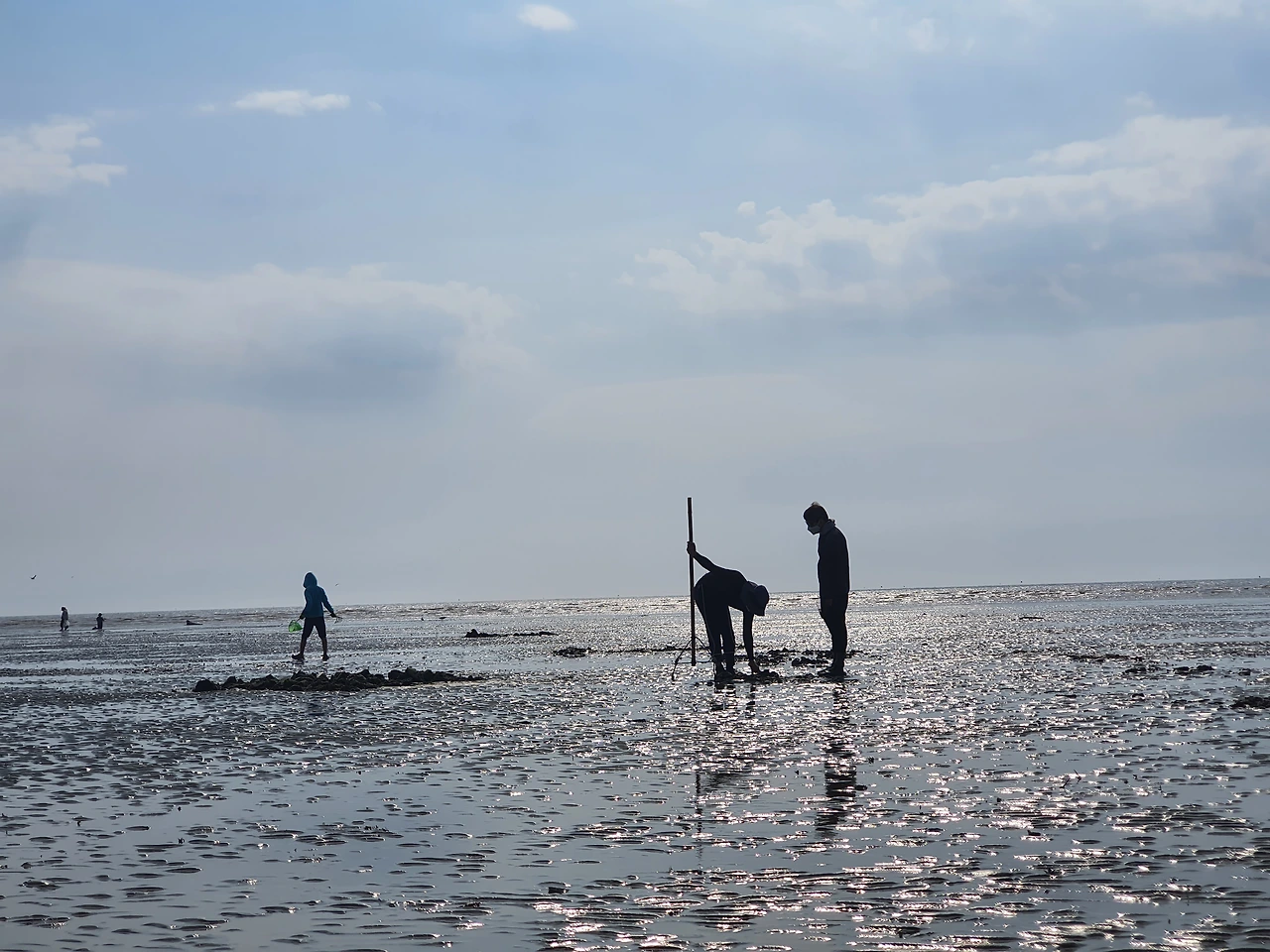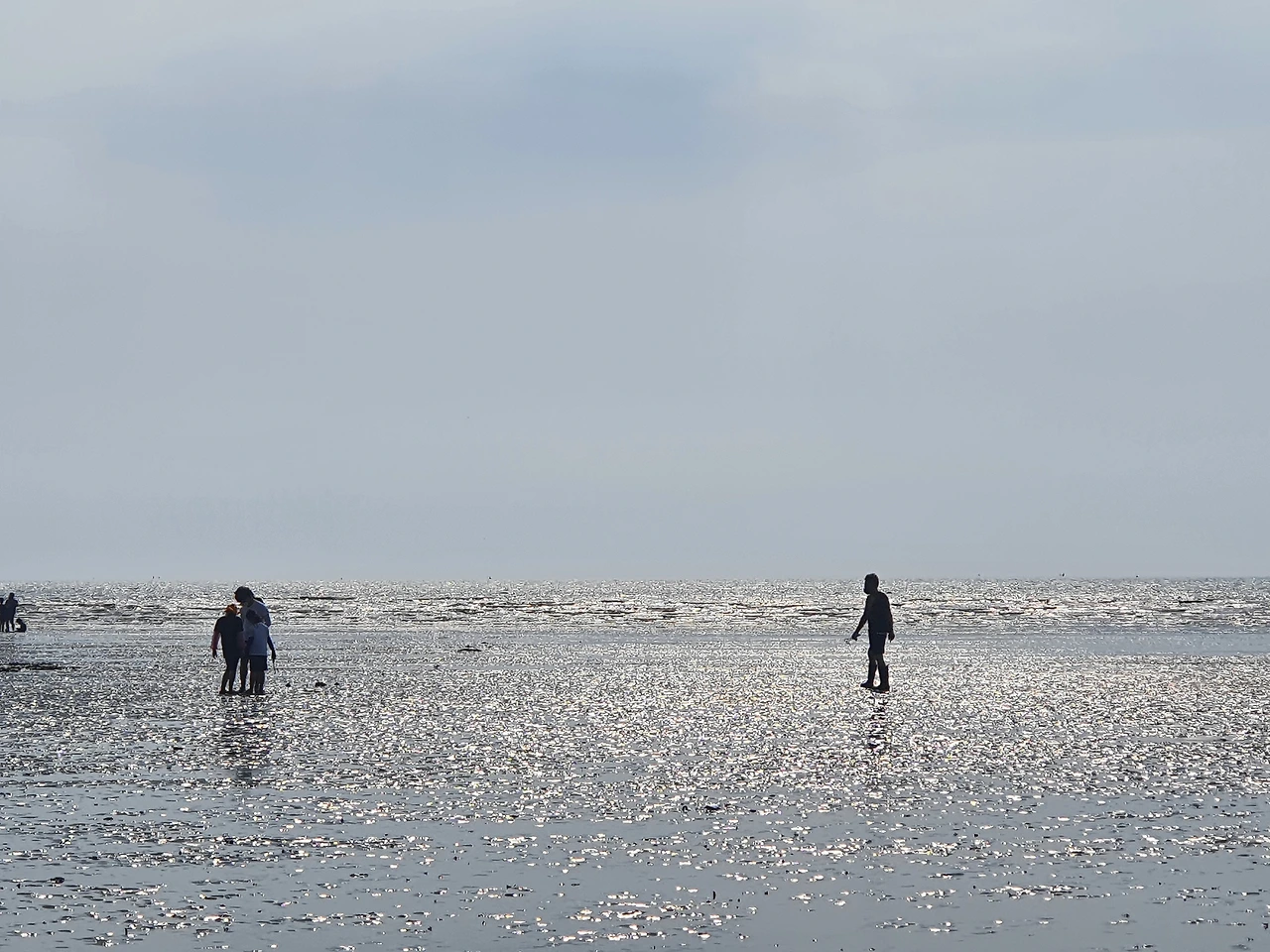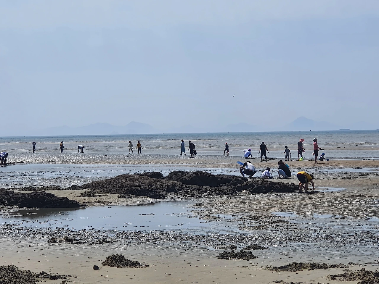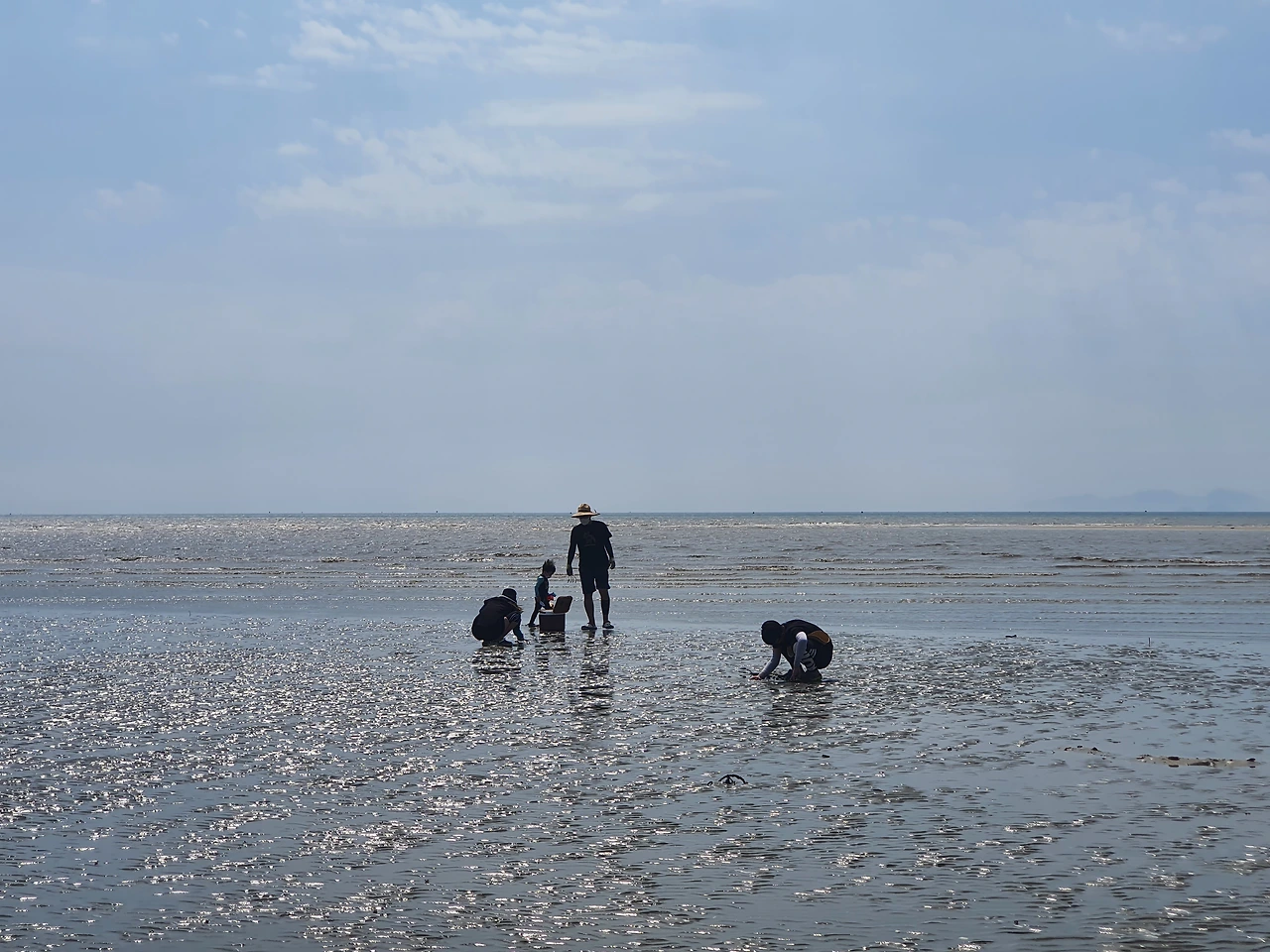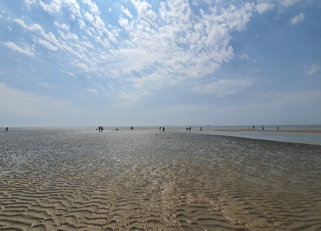 아이와 추억을 만드는 아빠, 조개를 캐는 가족들, 물장구치는 사람들, 팔짱 끼는 연인, 사진 찍는 사람들까지 저마다 지금 순간을 즐기고 있다.