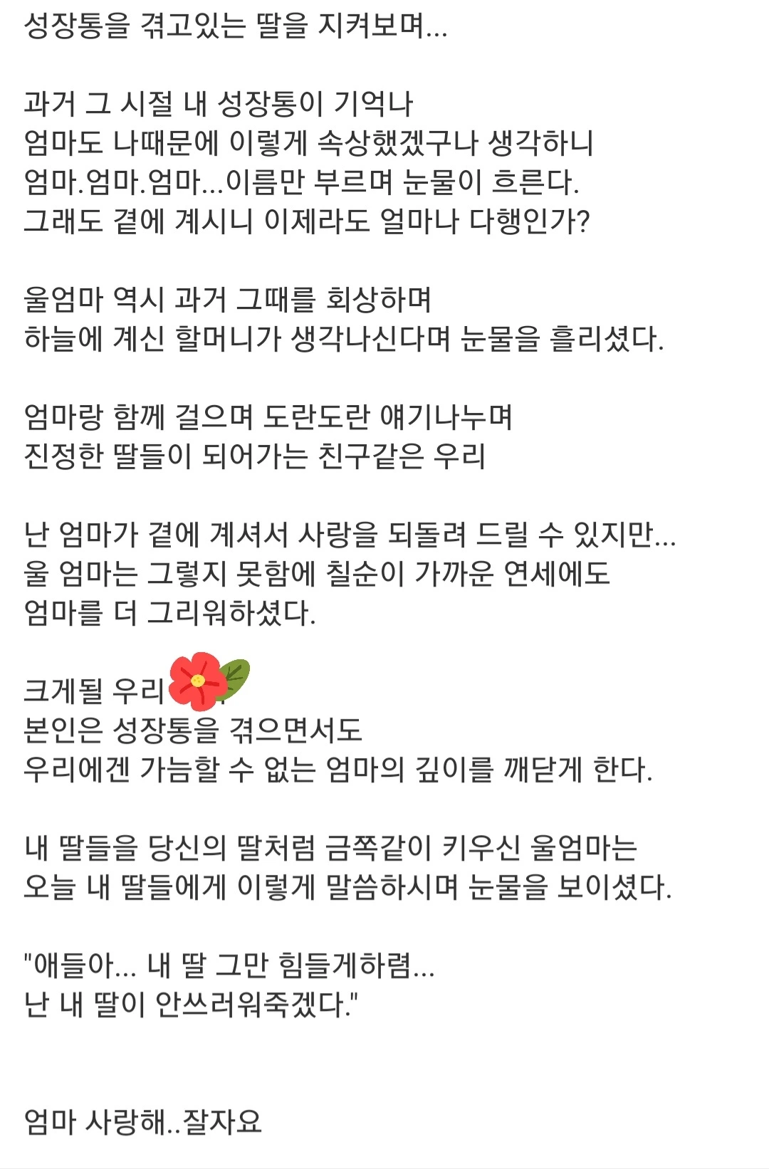 북한은 한국의 중2가 무서워 못 내려온다는 우스갯말이 있습니다. 사춘기는 어디로 튈지 모르는 예측불허의 절정시기라 그렇습니다. 감정과 이성은변덕스럽고 마치 롤러코스터를 타기에 어느 책 제목처럼 지랄과 사랑 사이에서 춤을 추는 때라고 합니다. 자존심이 유독 센 첫째 딸의 사춘기를 지켜보면서 아내의 감정도 자주 고갈됩니다. 한마디로, 아내는 지금 극한직업 체험 중입이다. 그러면서 자식은 분신이니 쉽게 분리가 안된다고 합니다. 엄마로서 짊어지는 몫이라며 아이와 함께 성장하는 과정이라며 애써 받아들입니다. 지난 몇 달간 아내의 정성이 첫째에게 전달되었는지 차츰 안정을 찾고 있습니다. 눈빛도 순해지고 예전처럼 수다쟁이가 되었습니다. 10년 후에는 지금을 웃으며 얘기할 수 있겠지만 경험은 한 번으로 족합니다. 먼저 겪으셨던 많은 분들의 도움과 응원으로 담담하게 이겨내는 중입니다. 평온한 일상이 얼마나 소중한지는 평범하지 않는 일들을 통해 알게 됩니다.