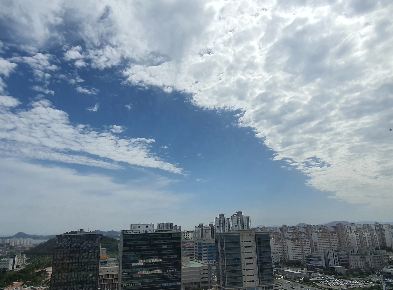 사무실에서 본 구름입니다. 여러 종류의 구름이 다채롭습니다. 어디에서 보느냐에 따라 풍경이 다른 것처럼, 어떤 시선으로 보느냐에 따라 다름이 존재합니다. 기를 쓰며 맞다고 주장할 필요가 없습니다. 산마다 조망이 다르듯 대상에 대한 시선도 앎과 이해에 따라 영향을 받습니다. 다른 시각으로 대상을 바라보며 사유하는 시간이 많을수록 예리함이란 무기가 생길지도 모릅니다.