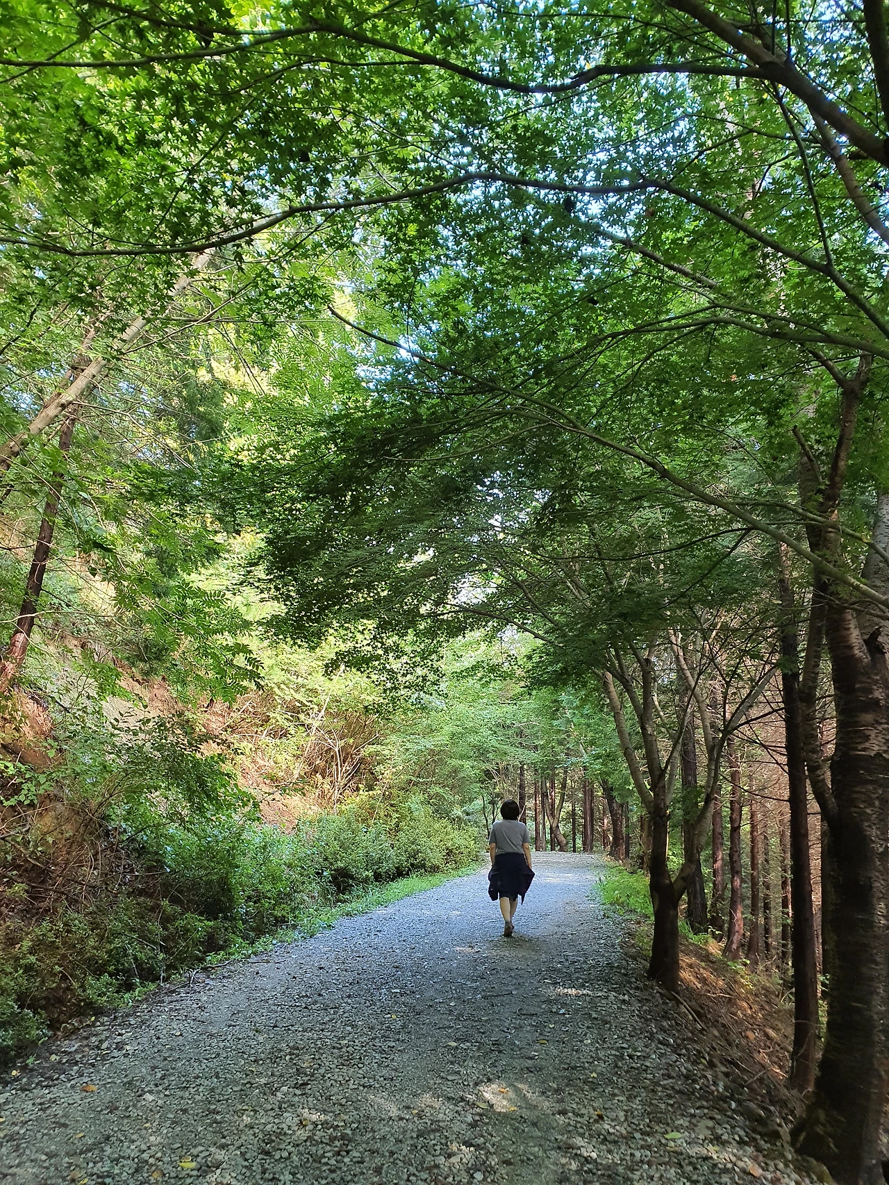 길마다 다른 풍경을 만납니다. 청설모가 빠르게 지나가고, 하늘을 찌를 듯한 편백숲도 만납니다. 산을 춤추게 만드는 바람이 간들간들 나뭇잎을 건드리자 그 틈새로 햇빛을 흩트립니다. 순간 펼쳐지는 빛 쇼는 찬란합니다. 걷는 속도에 따라 풍경은 정밀화가 되기도 합니다.