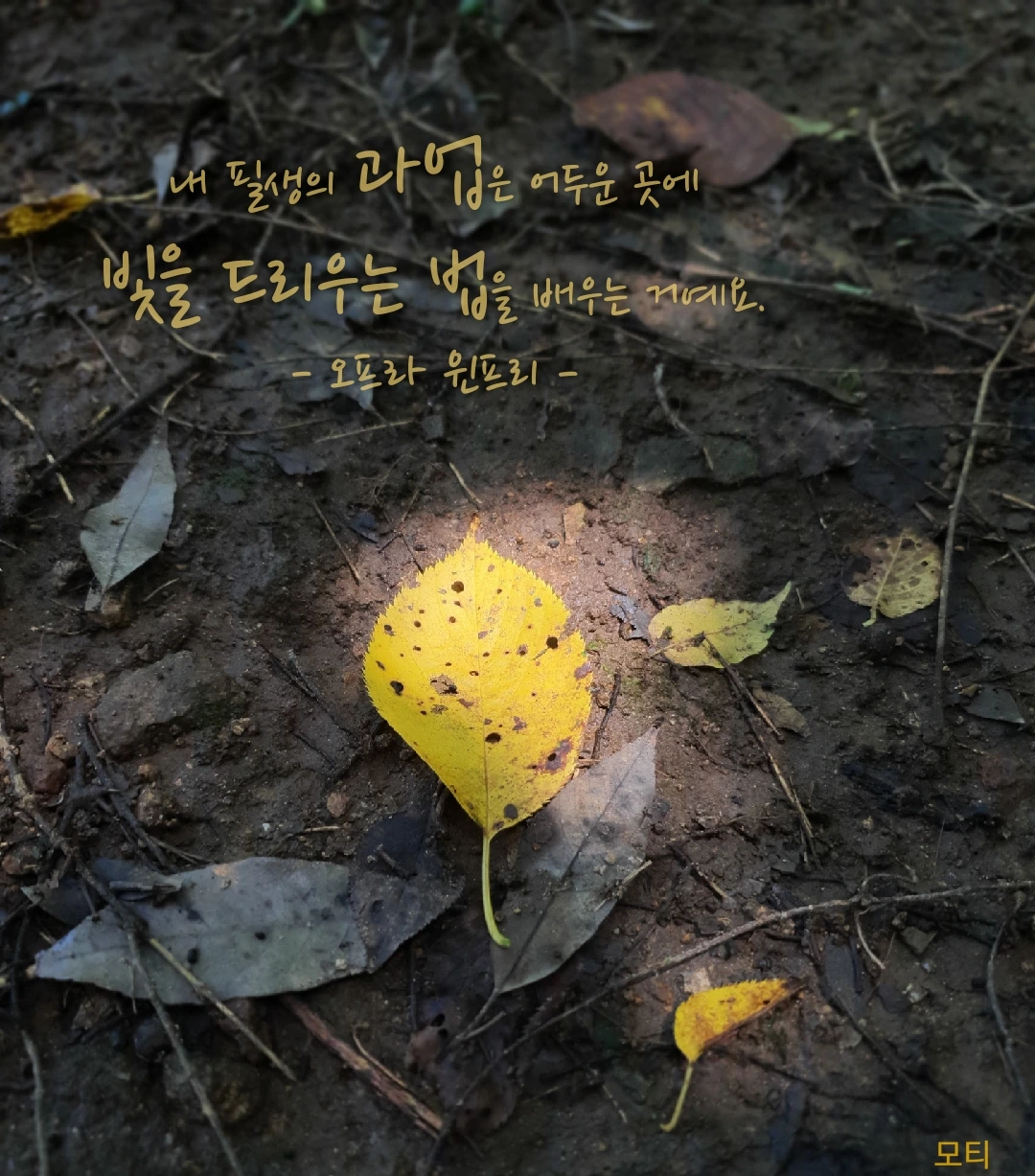 원하는 삶과 현재의 삶의 차이만큼 허탈한 마음이 들기도 합니다. 다른 사람들은 여유 있고 행복해 보입니다. 그럴 때마다 지금 할 수 있는 작은 일에 찾습니다. 무작정 걷기, 낯설게 보기, 음악 듣기, 사진 찍기, 책 읽기를 하면서 수고한 나에게 작은 선물을 줍니다. "수고했어 오늘도" 라며 하루의 흔적을 남깁니다.