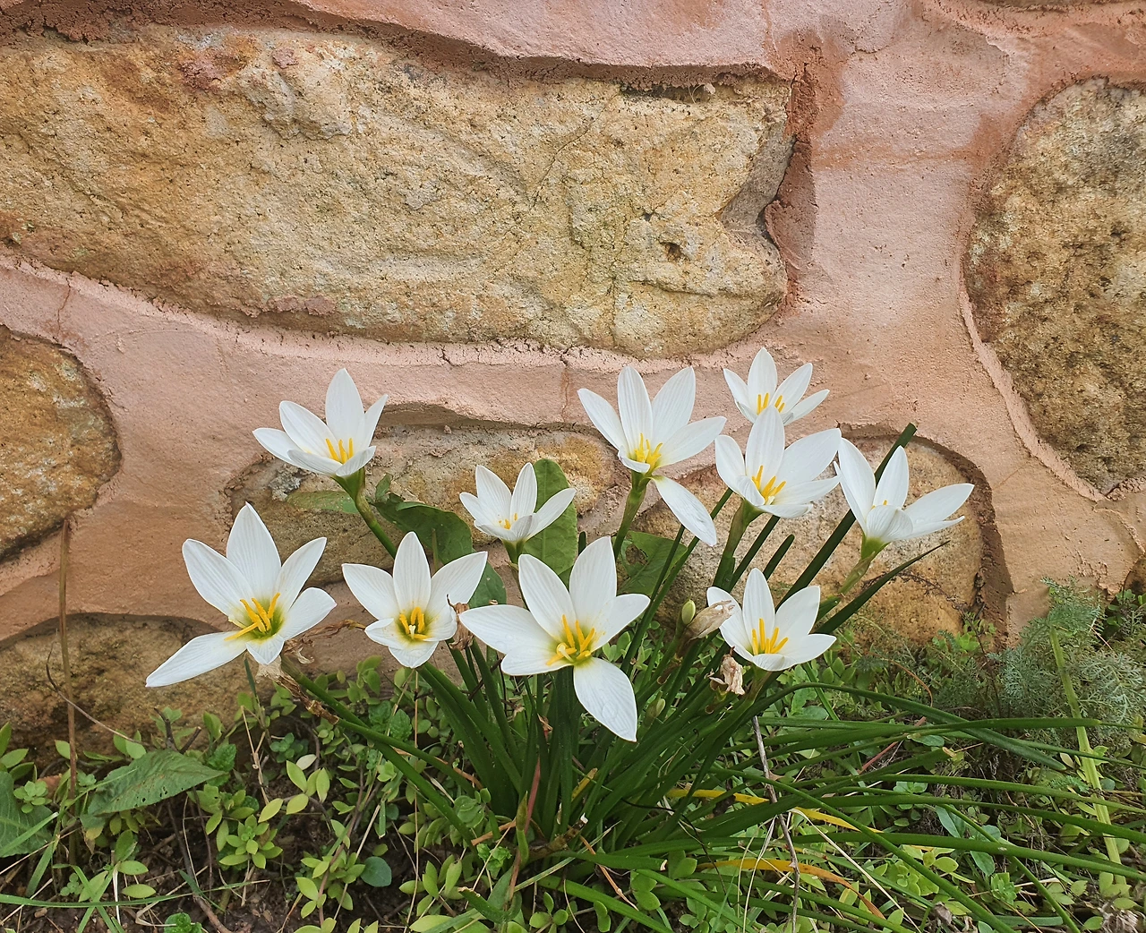 가장 찬란한 순간, 절정의 때를 봐달라며 수선화 종류의 꽃들이 재잘거립니다. 10개의 꽃은 닮은 듯 다릅니다. 보기만 해도 기분이 좋아집니다. 담벼락에 심어둔 주인의 마음씀이 함께 피었습니다.