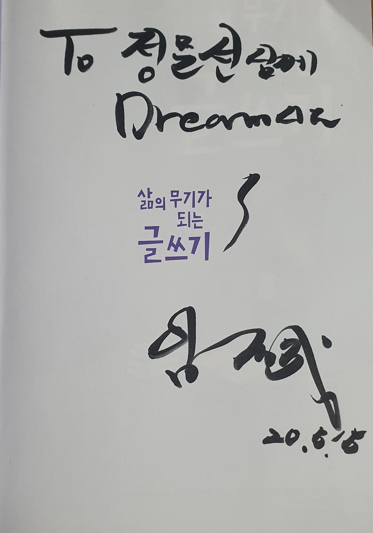 1년이 훌쩍 지났지만 가끔씩 작가님께 안부를 물으며 일상을 전합니다. 꾸준한 모습이 보기 좋다며 응원도 해주십니다. 먼저 길을 걸었던 사람은 걷고 있는 사람을 알아볼 수 있는 눈이 생깁니다. 질문하는 내용에 따라 어느 수준인지 알 수 있습니다. 다시 만날 날을 생각하며 부지런히 글을 씁니다. 그때보다 성장해서 찾아뵙고 싶습니다.
