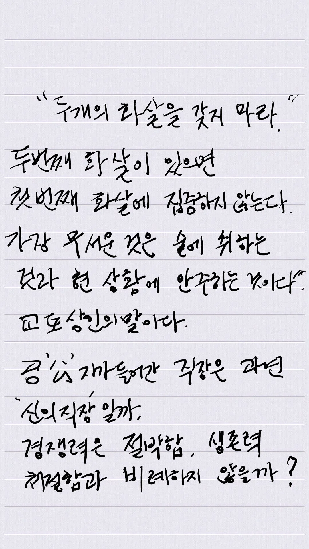 "좋은 글들을 보면서 아침마다 참 행복했습니다. 마지막 출근이라 인사드리고 갑니다. 감사합니다."
