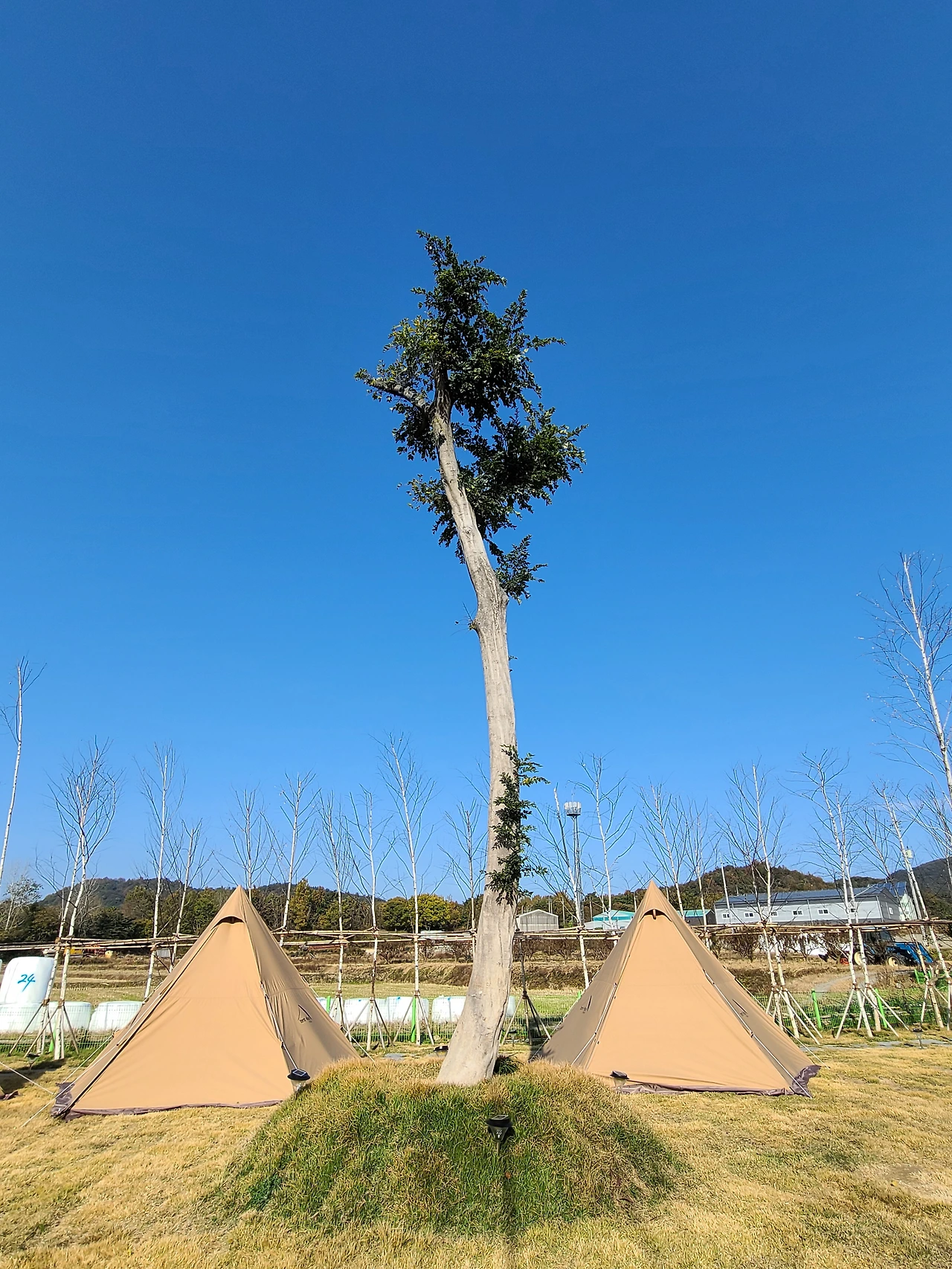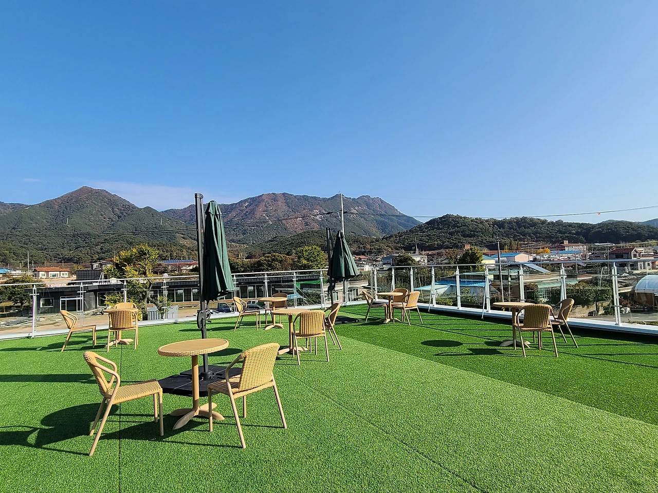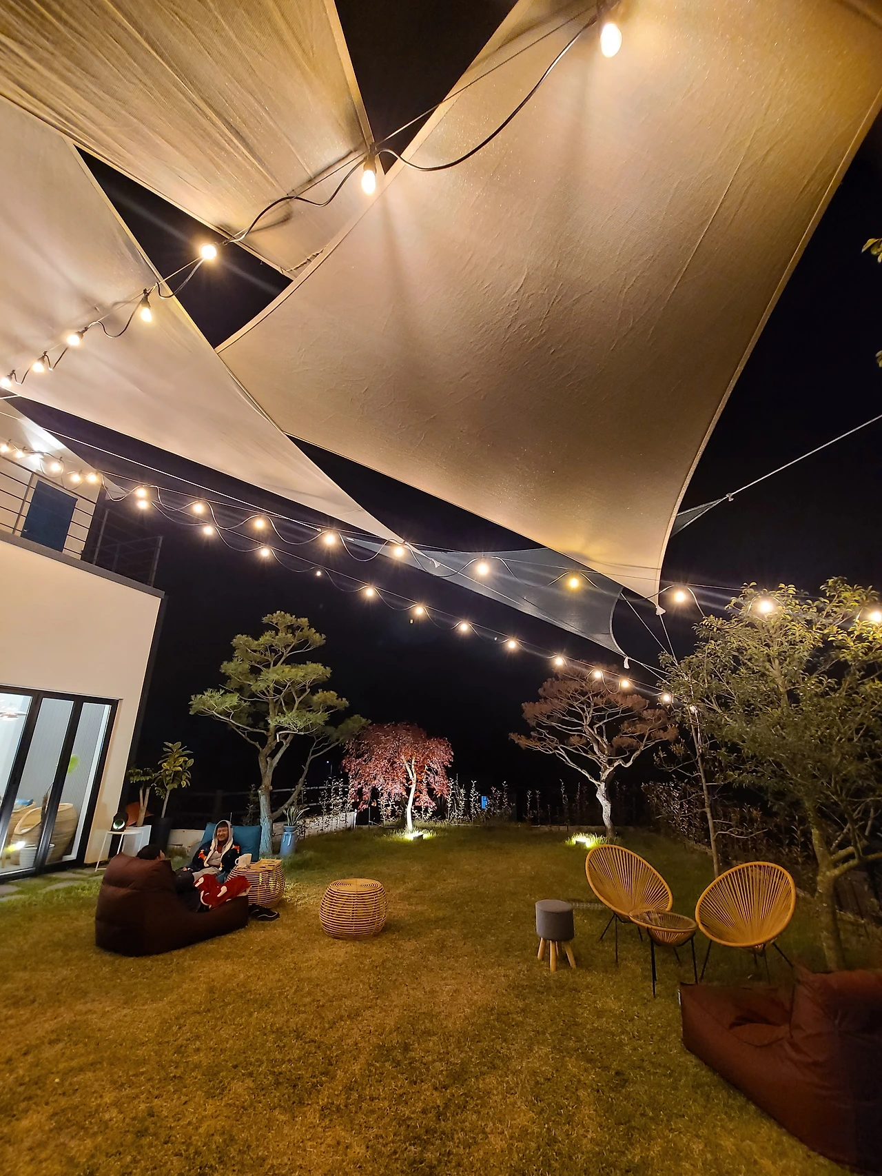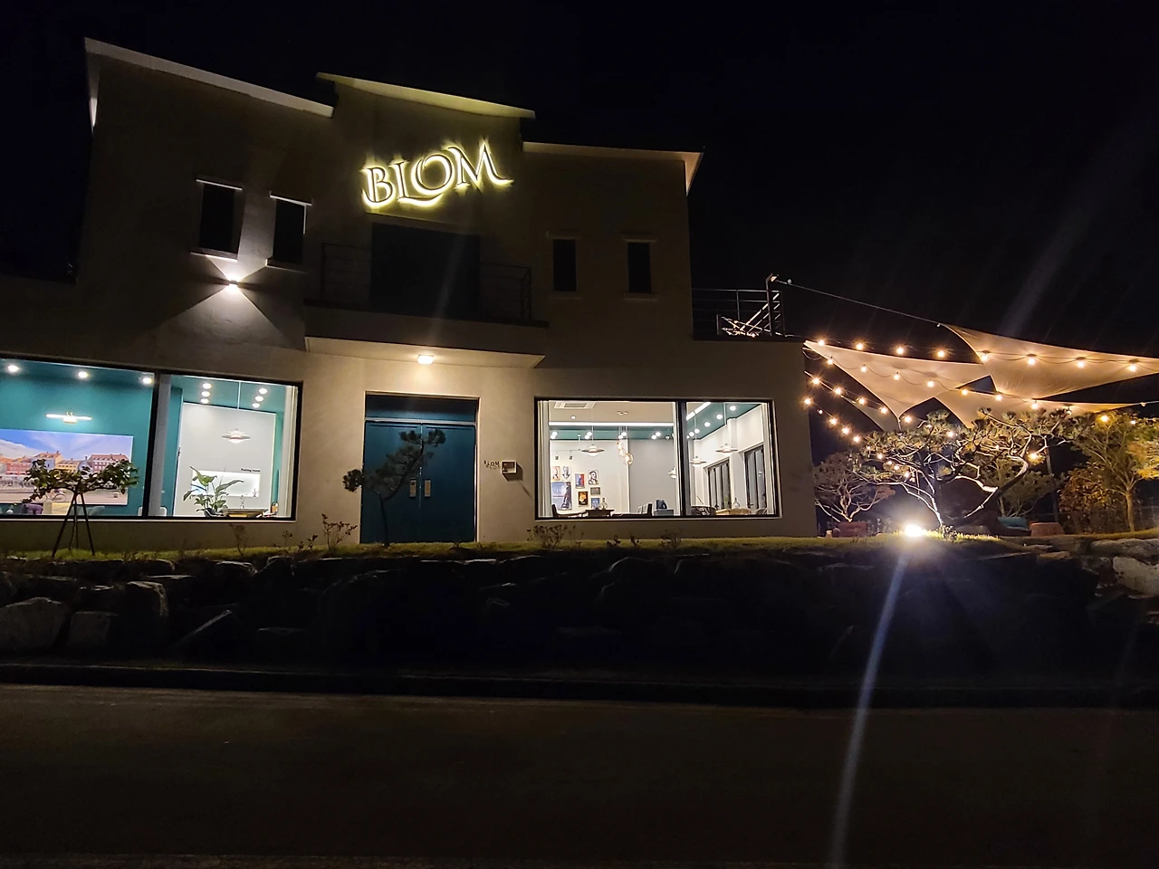 고급스러운 두 개의 건물, 중심부 계단으로 이어진 2층 전망, 확 트인 자연 속 여유 공간 그리고 젊은 층을 겨냥한 미니멀한 인테리어가 눈에 띄었습니다. 연인과 가족을 겨냥한 콘셉트인 듯 보였습니다.