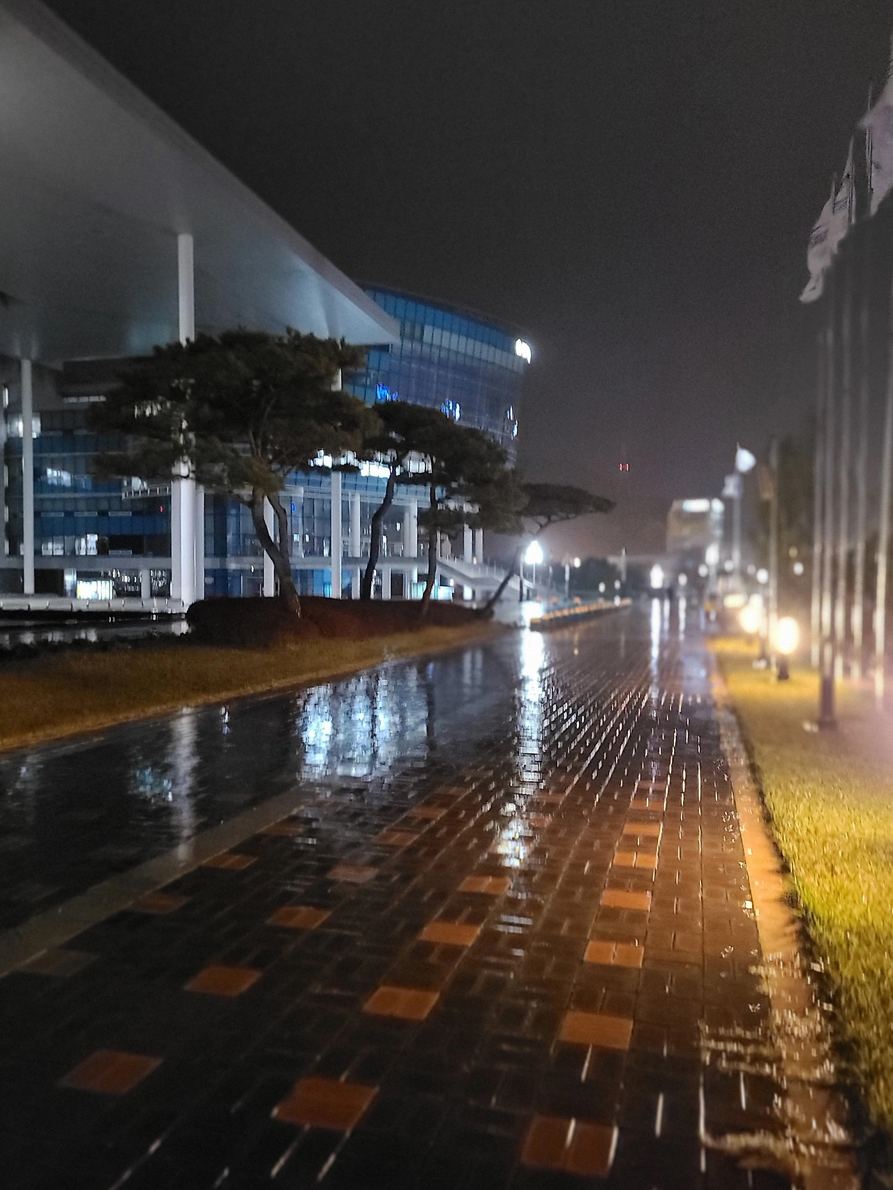 빗속에 반사된 불빛