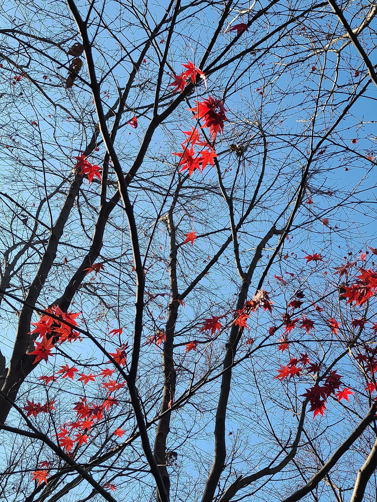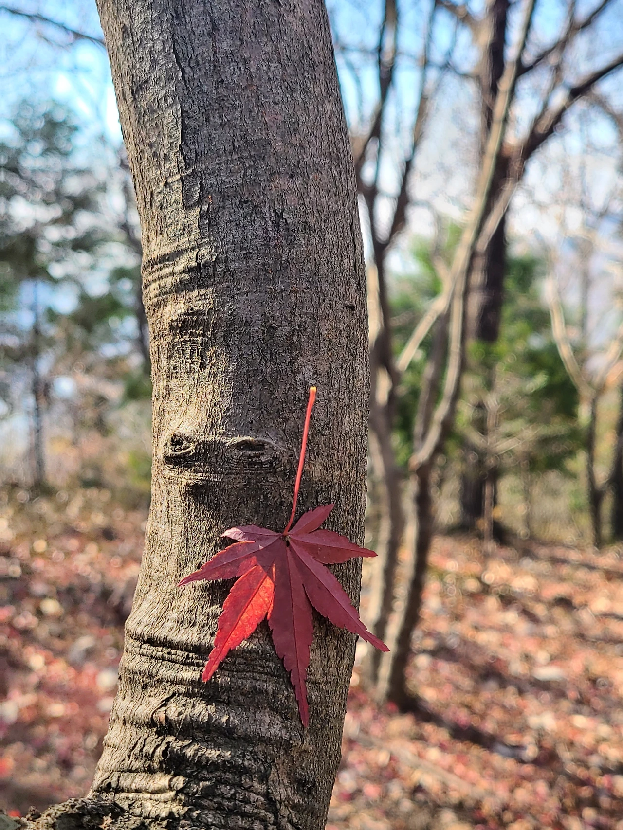 바람에 흩날린 낙엽이 나무에 붙었습니다. 잠시 쉬며 목을 축이다 보게 된 나무와 단풍의 조우였습니다. 강렬하게 각인되었습니다. 두고두고 남을 사진입니다. 순간포착, 머무는 시간은 5초였습니다. 세상에 이런 일도 있습니다.