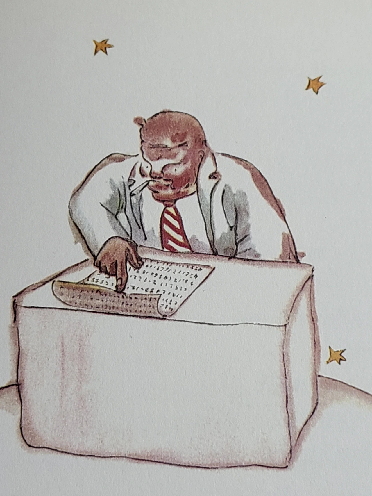 나보다 먼저 별을 갖겠다고 맘먹은 사람이 하나도 없으니까 별은 내 소유야. 그건 사실이에요. 그렇지만 그걸로 뭘 하는데요? 어린 왕자가 말했다. 관리하지. 별을 세고 또 세는 거야. 어려운 일이지. 그러나 난 중대한 일을 하는 착실한 사람이야. 사업가가 말했다.