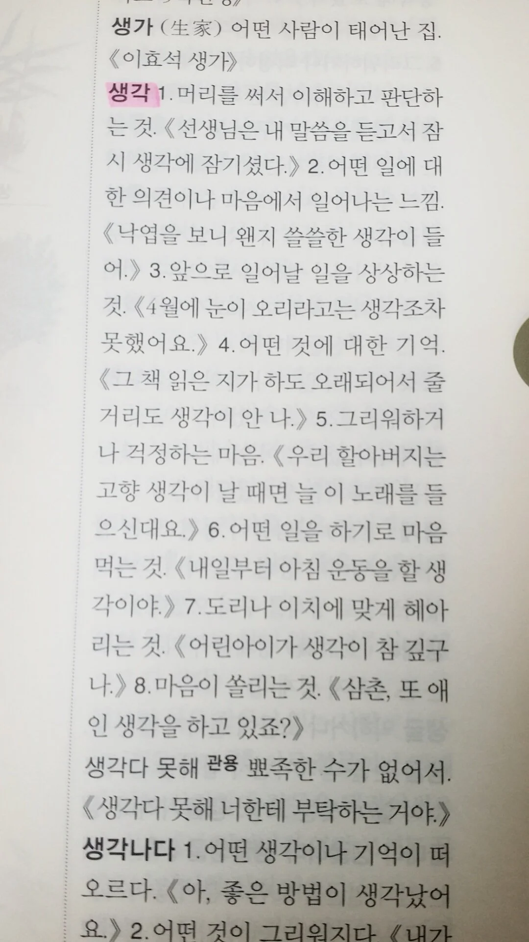 사전에서 단어 하나 찾아보는 작은 실천이 생각이란 단어에 대해 어느 정도 이해하고 정리하는 시간이 되었다. 바쁜 생활에서 사고를 확장하는 기회는 많지 않다. 그러나 단어 사용에서부터 이 단어가 적당할까? 다르게 생각되지 않을까?라는 문제의식으로 의문과 적용을 반복하면 지레짐작하며 실수하는 일은 줄어들 것이다. 생각이 다르다는 것을 인지한 채로 대화를 하는 것이 필요하다.