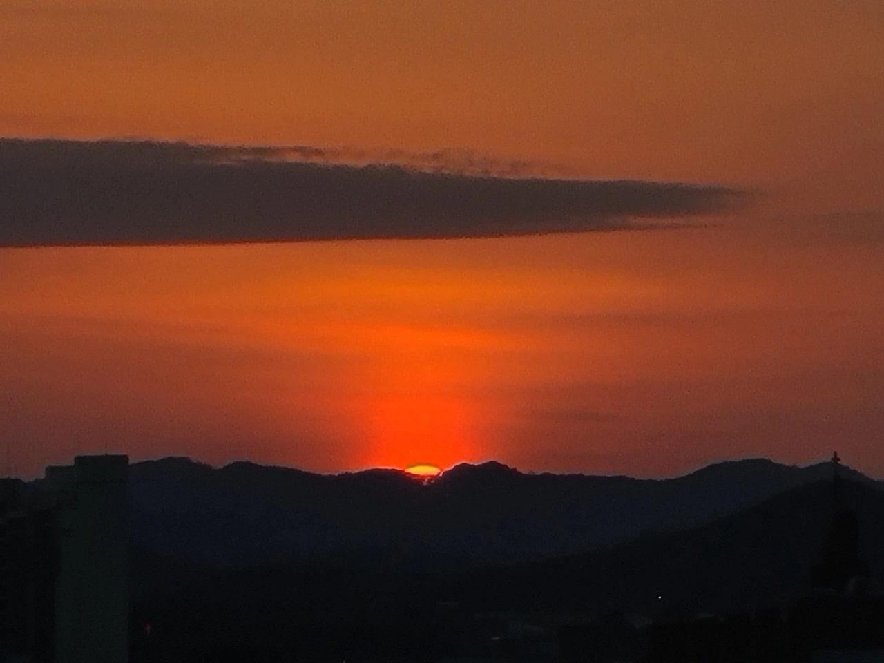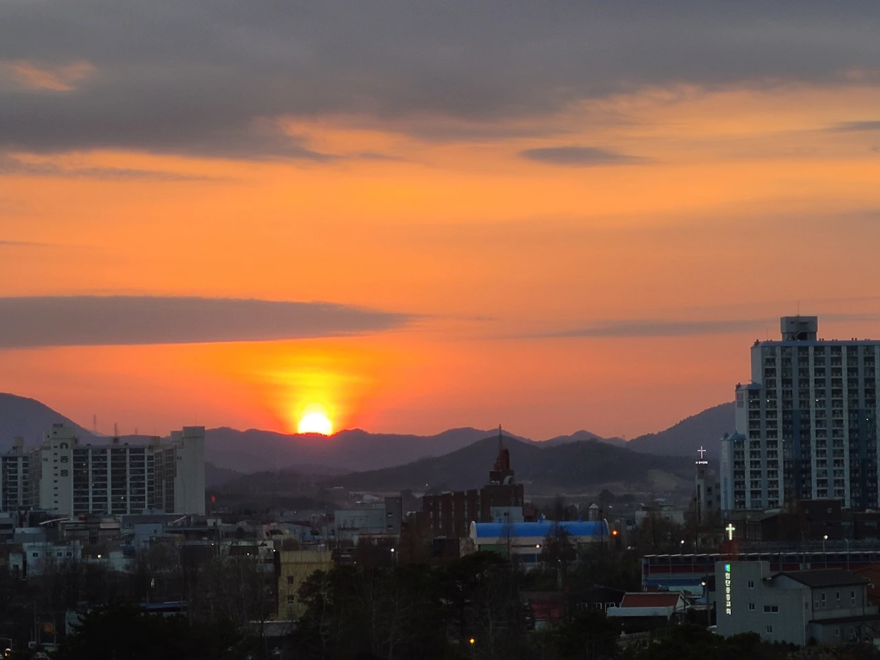 12층 아파트 베란다에서 보는 석양입니다. 베란다는 계절과 날씨에 따라 자연 명화를 선물해 줍니다. 베란다에서 수백 장의 사진을 찍었을 겁니다. 석양을 바라볼 수 있는 노력만 필요할 뿐이었습니다.매직 아워를 보기만 하면 되니까요. 검붉은색이 인상적입니다. 붉은색의 그러데이션이 석양을 중심으로 최후를 마중합니다.