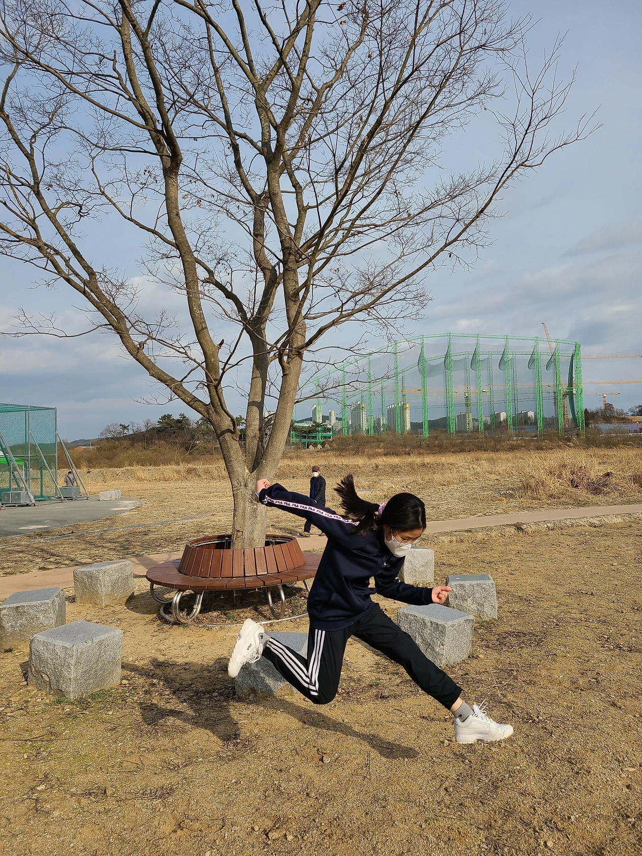 둘째가 점프 순간을 잡으라 재촉합니다. 수십 장 찍은 사진 중 둘째가 선택한 사진입니다.