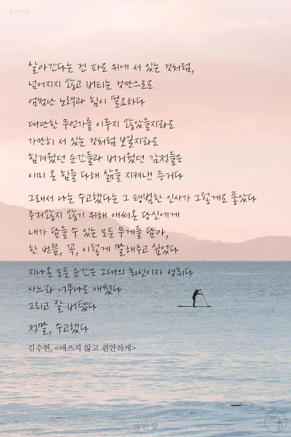 사랑으로 온통 채워진 세상을 알게 해 준 사람을 만나는 건 축복임에 분명합니다. 어디까지 사랑해봐야 할까요. 얼마큼 아껴야 할까요. 많이 아파보았을 사랑이겠지요.