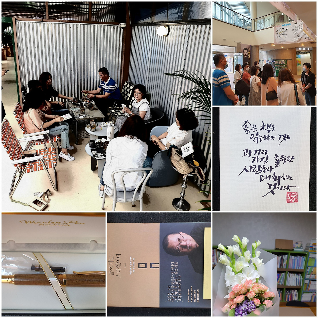 작가님과 함께 저녁을 먹으며 강의 들으면서 궁금했던 내용, 글을 쓰는 방법, 책을 읽는 요령 등 많은 얘기를 나누었다. 작가와의 만남을 기획하기 된 것은 회원들에게 색다른 경험을 주고 싶어서였다. 계속해서 책을 읽도록 돕고 싶었다. 시군에 복귀하더라도 그곳에서 독서 모임의 리더로서 역할을 해주었으면 하는 마음이었다.