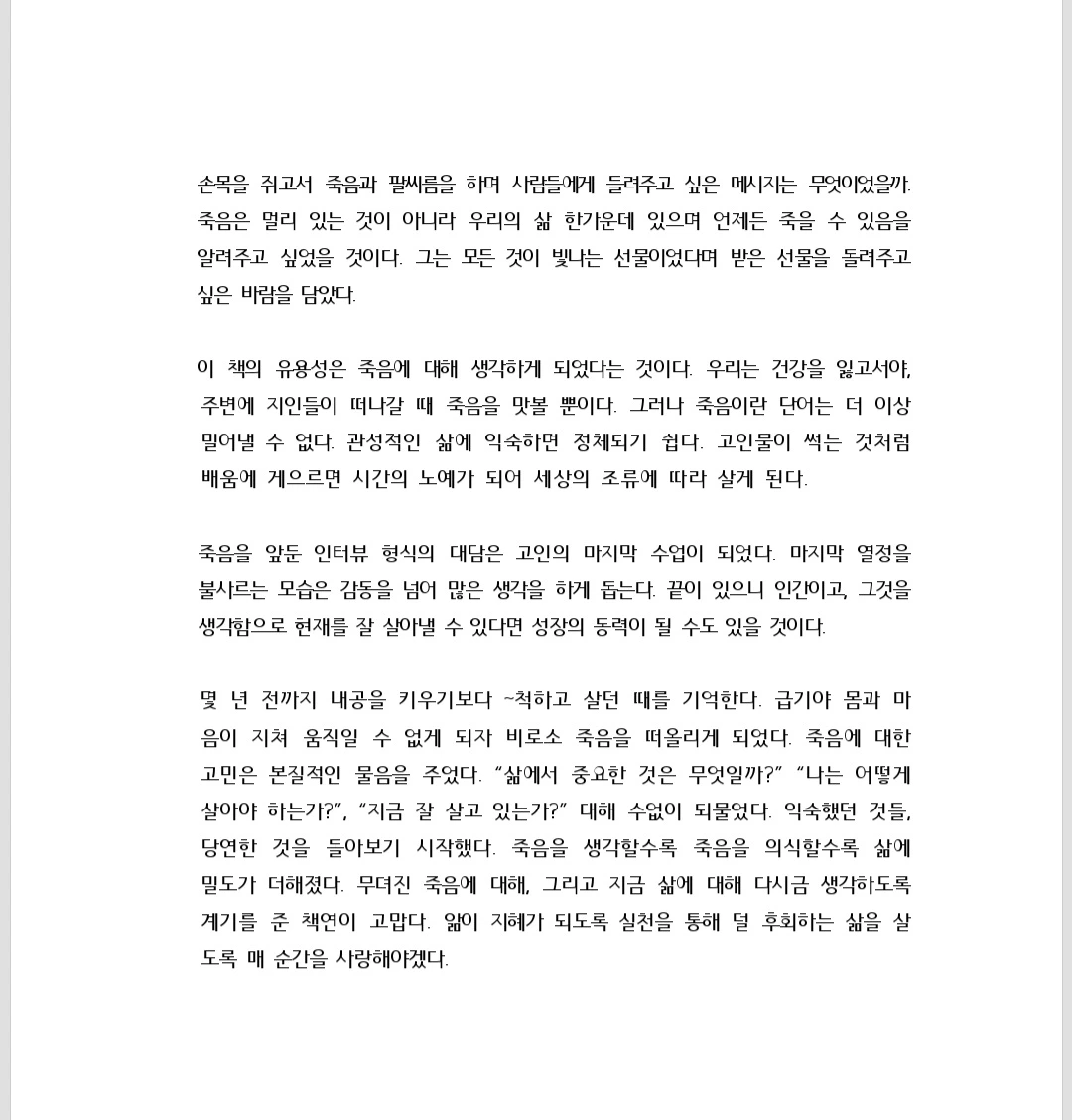 "끝이란 없어요. 이어서 또 다른 영화를 트는 극장이 있을 뿐이지요"끝은 새로운 시작입니다. 끝맺음을 잘하는 삶이고 싶습니다.